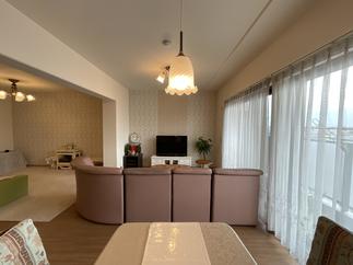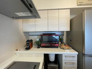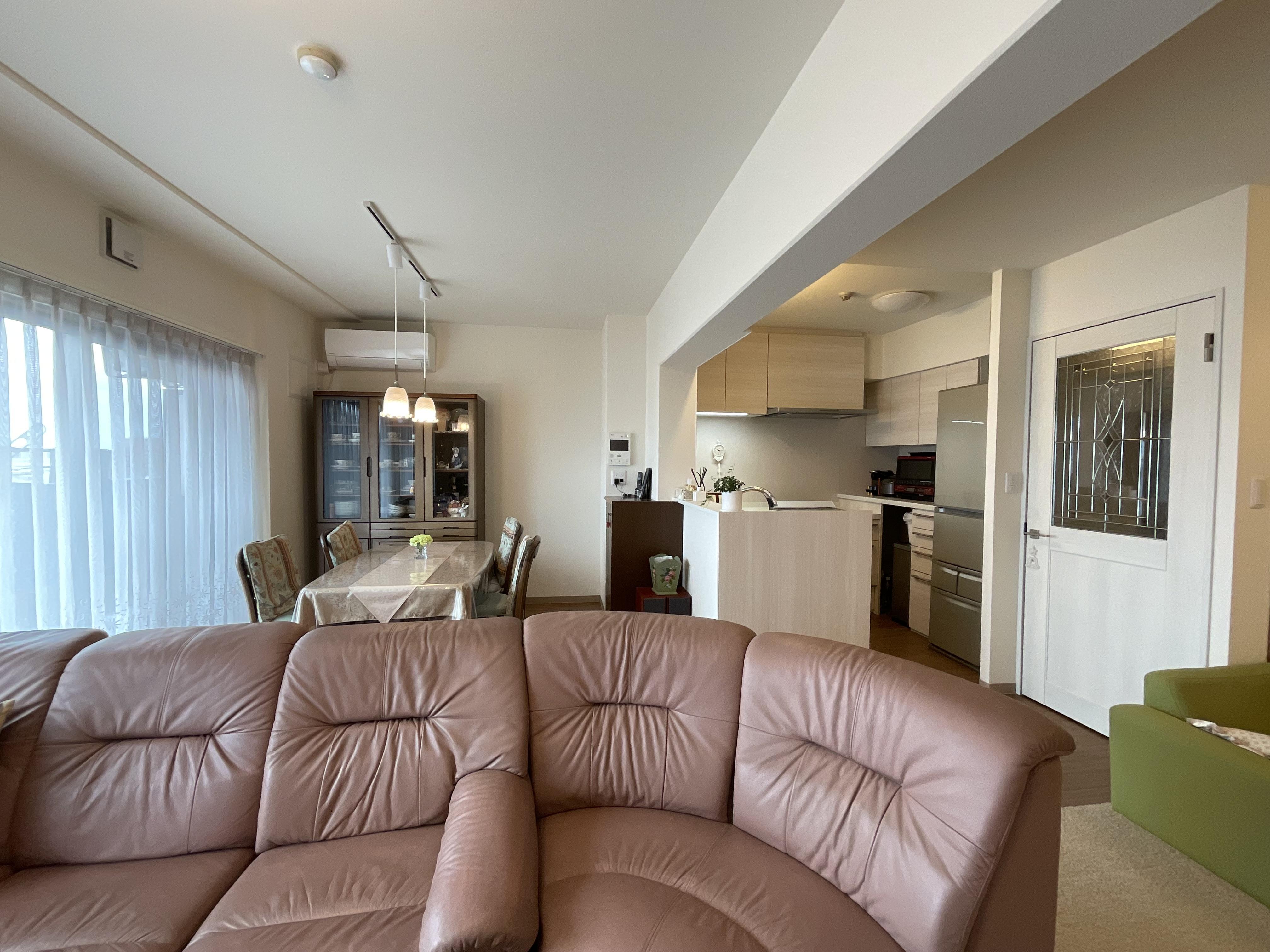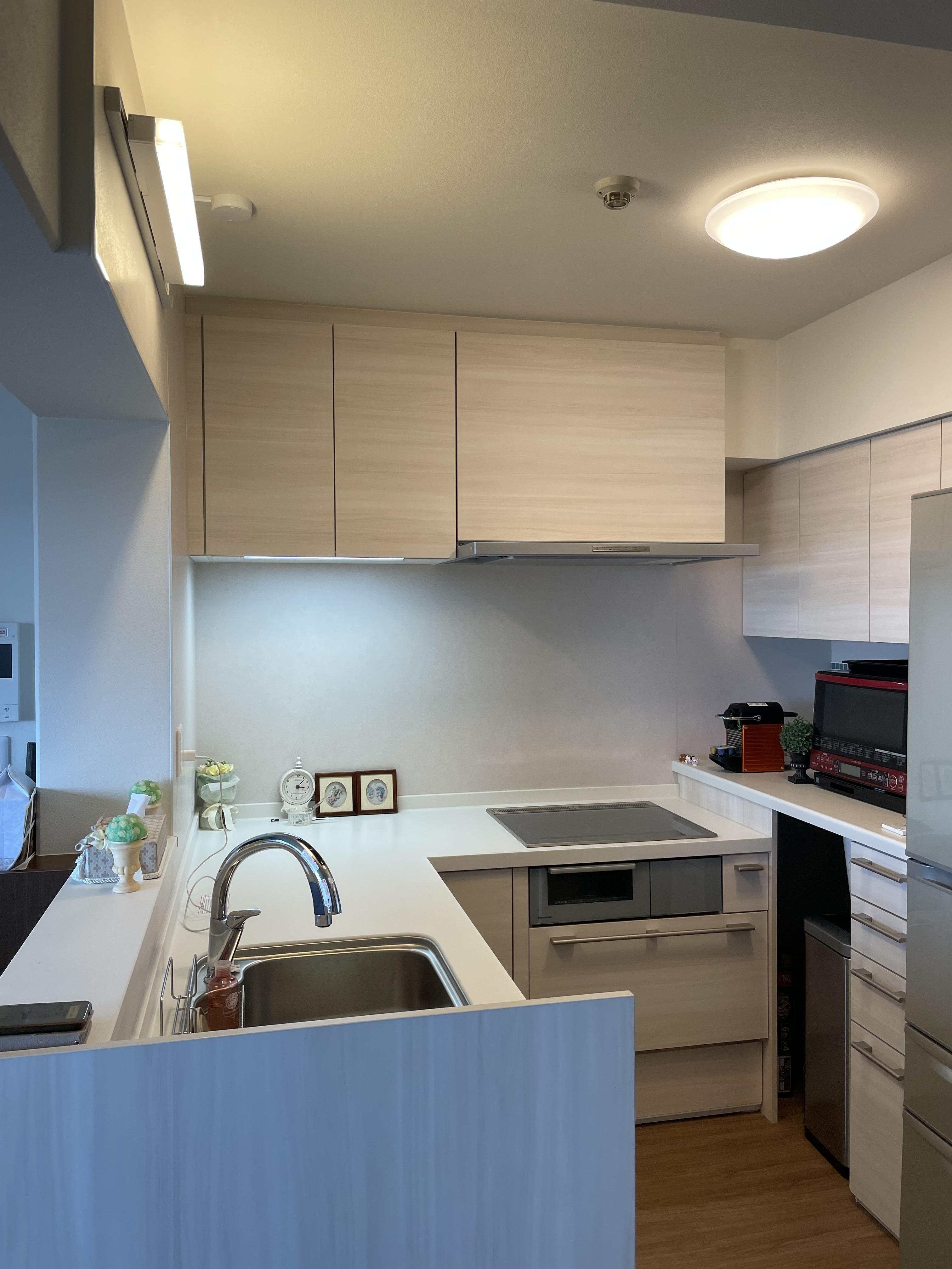マンションのリフォームです LDKを広く使いたいと和室を洋室にしました 壊せないコンクリート部分を残し、壁も撤去し、キッチンも明るく開放感があります 全体の色使いをまとめたため、大人かわいい空間ができました