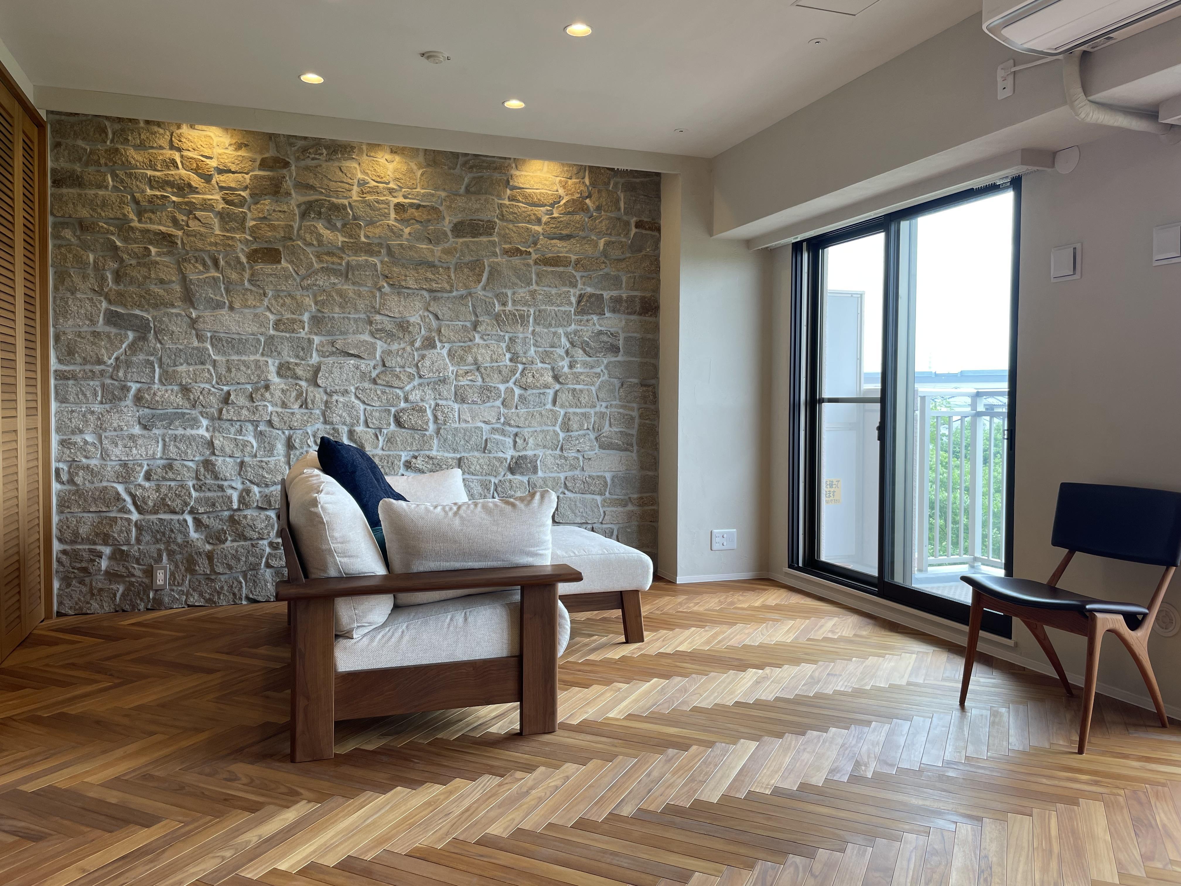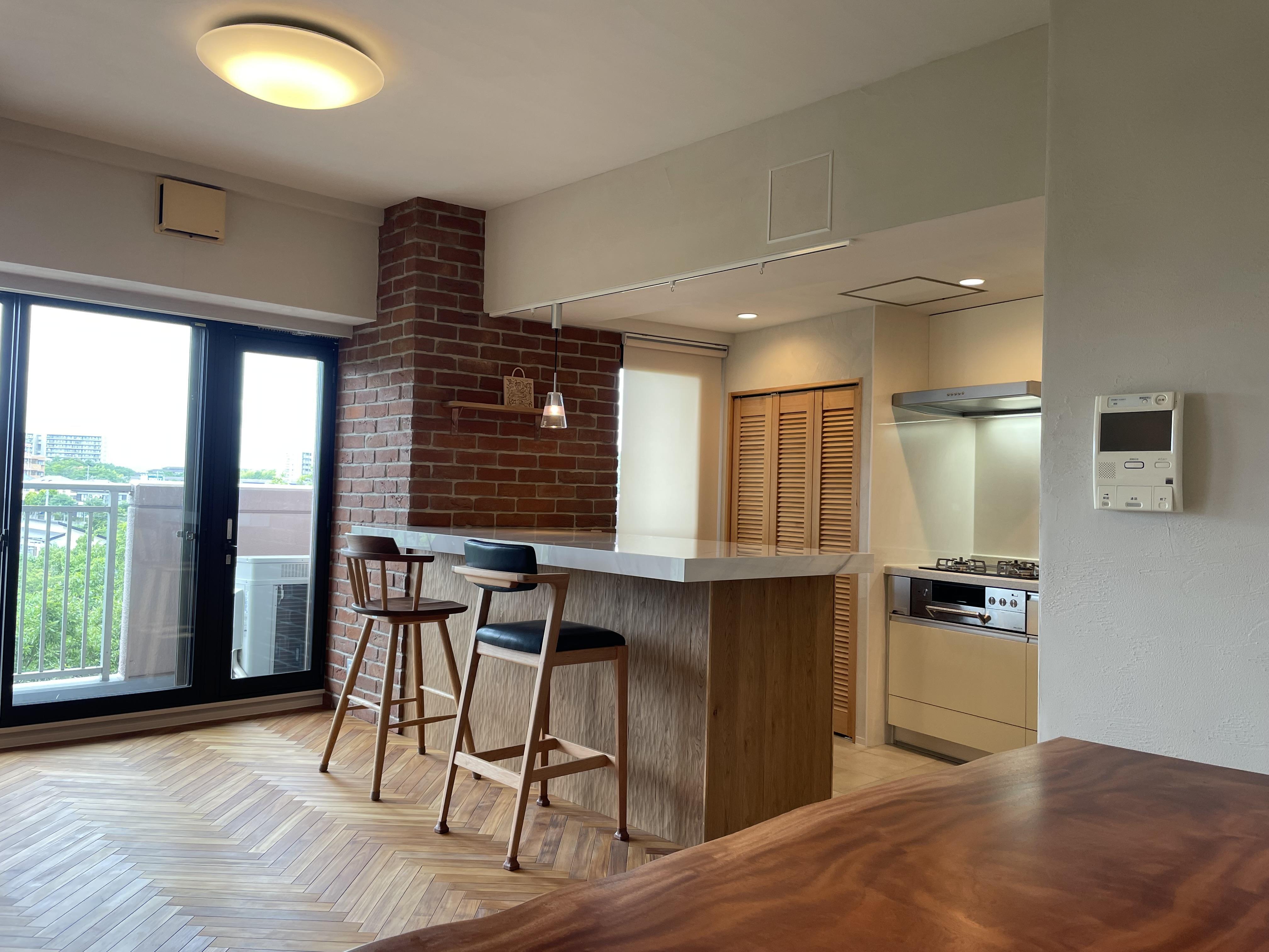 留学をされていた海外の住宅イメージで、自然な雰囲気を楽しめるお部屋を作っていきたいと仰られていた事が印象的でした。 じっくりと納得のいく材料を選定いただき、私も楽しみながらお仕事させていただきました。 インテリアもお部屋のテイストにあわせて厳選され、お伺いするたびに少しずつ変化し、カッコいい素敵な空間に今も変わってます。