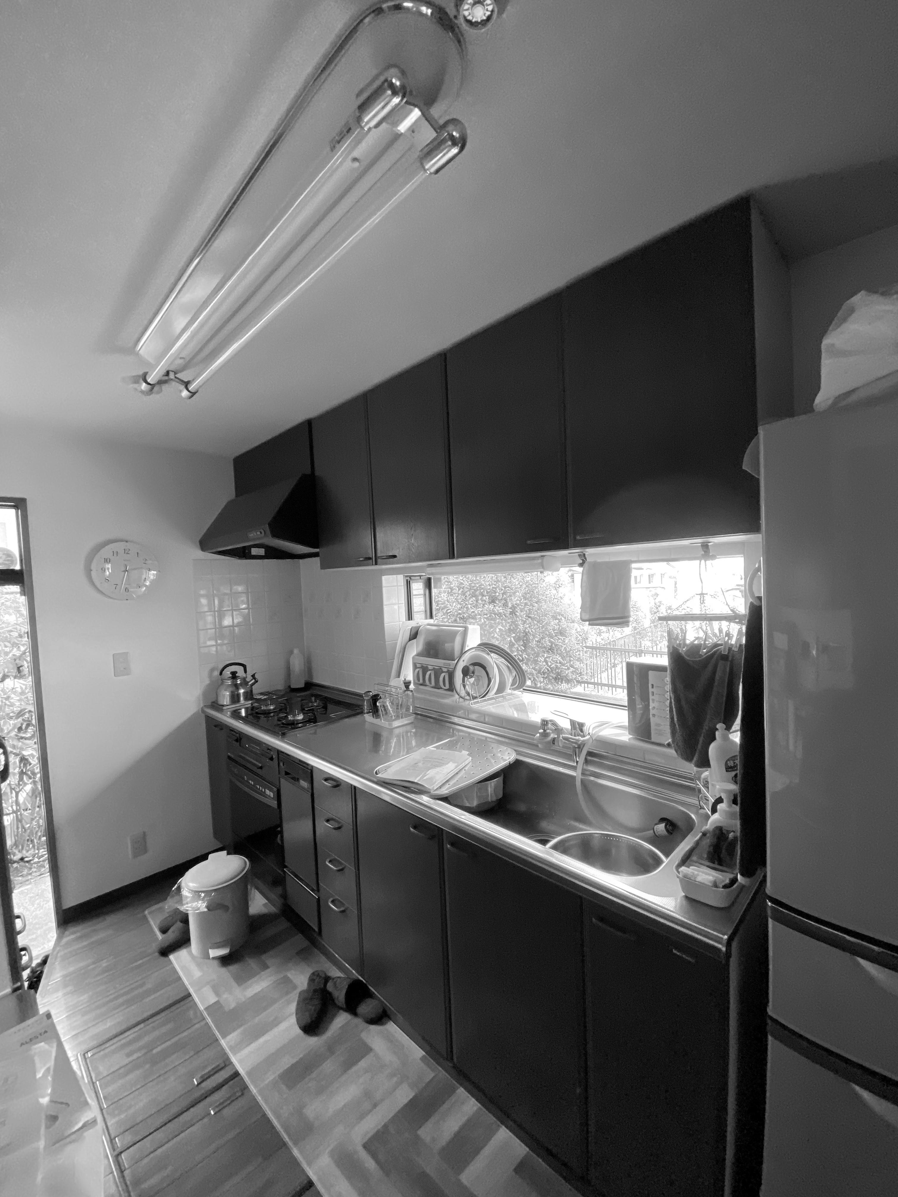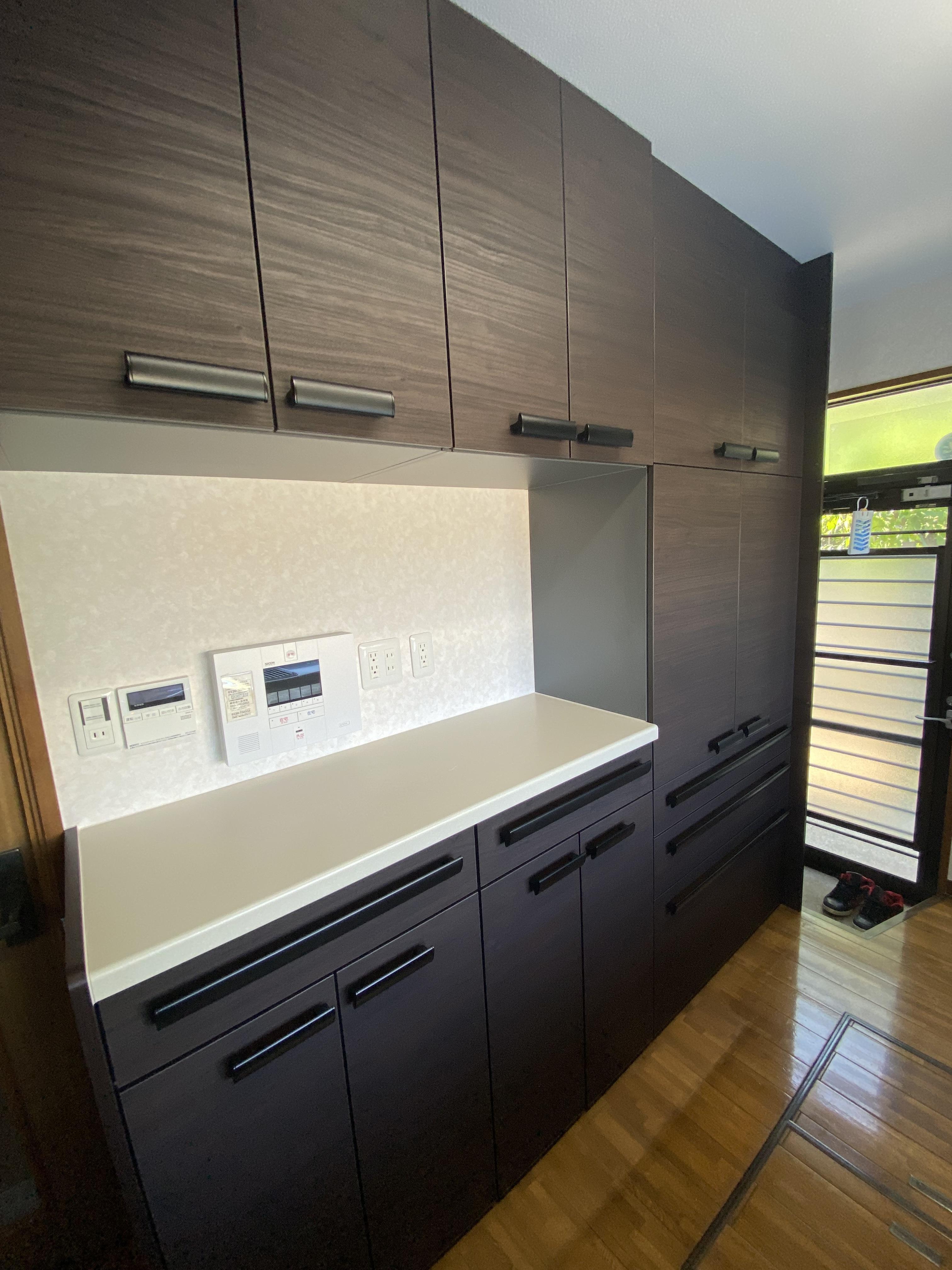 外装の工事中にキッチンのお話も頂きました コンクリートの建物でしたので、工事の準備には念を入れ準備しました 素敵なキッチンに仕上がり嬉しく思います