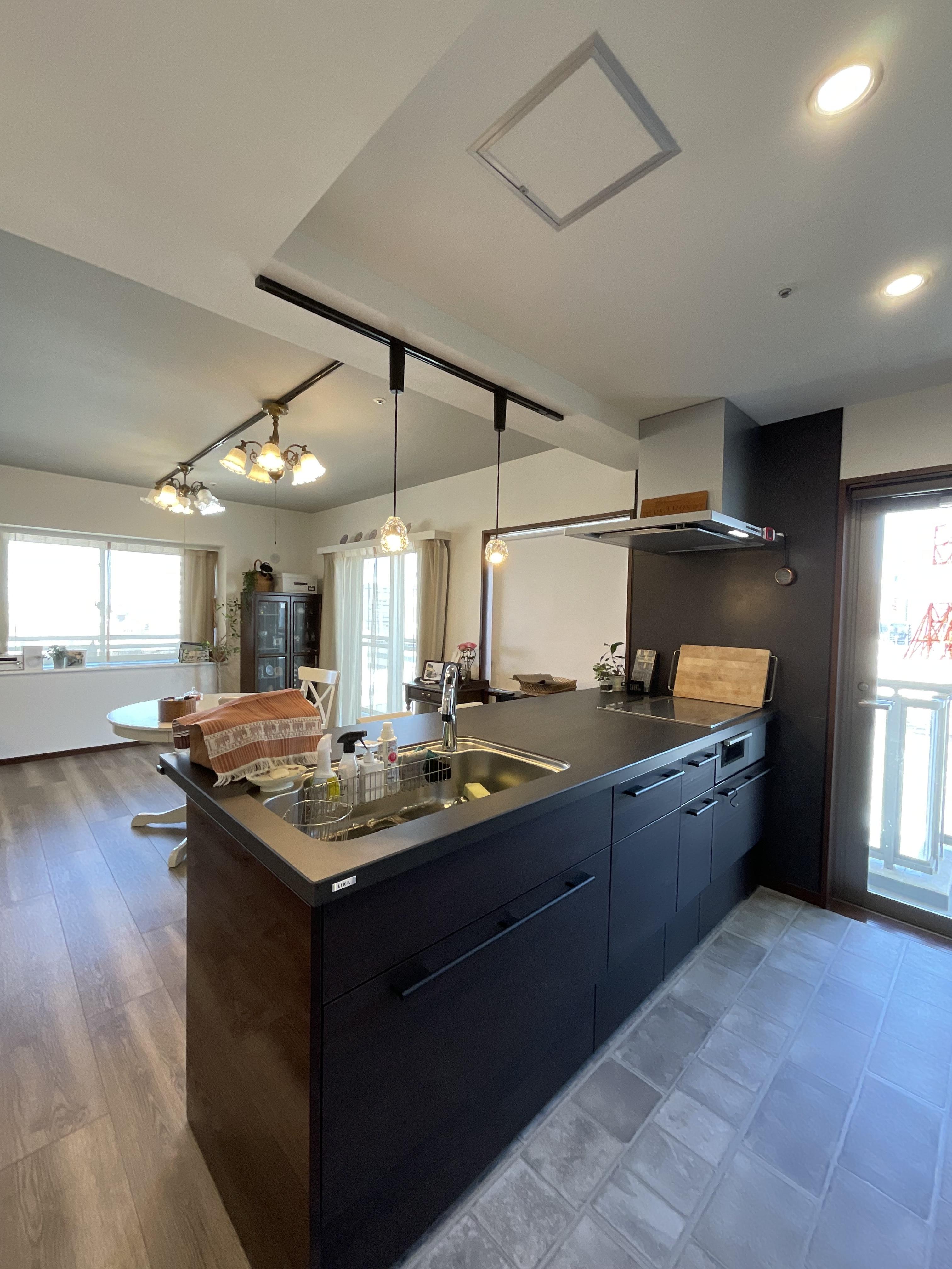 キッチンはLIXILのリシェルSIを採用。セラミックトップが広くて効率的。使いやすくて満足しています。 お料理が楽しくなり、幅も広がりました。 収納に悩みがありましたが、スーツケースや釣り道具なども収納できるようになり、家全体の使い勝手も格段に良くなりました。 LDKのなんとなく閉鎖的なイメージからキッチンのアクセントカラーで豪華なイメージに変わり、気分もあがります。 毎日、ジャズの流れる部屋で、夜景を見ながら二人で1杯というのが楽しみになりました。