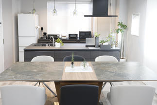そこで使われていなかった個室を取り込んで広々LDKが誕生。家族が集いながらも、三世代が思い思いに過ごせます。
