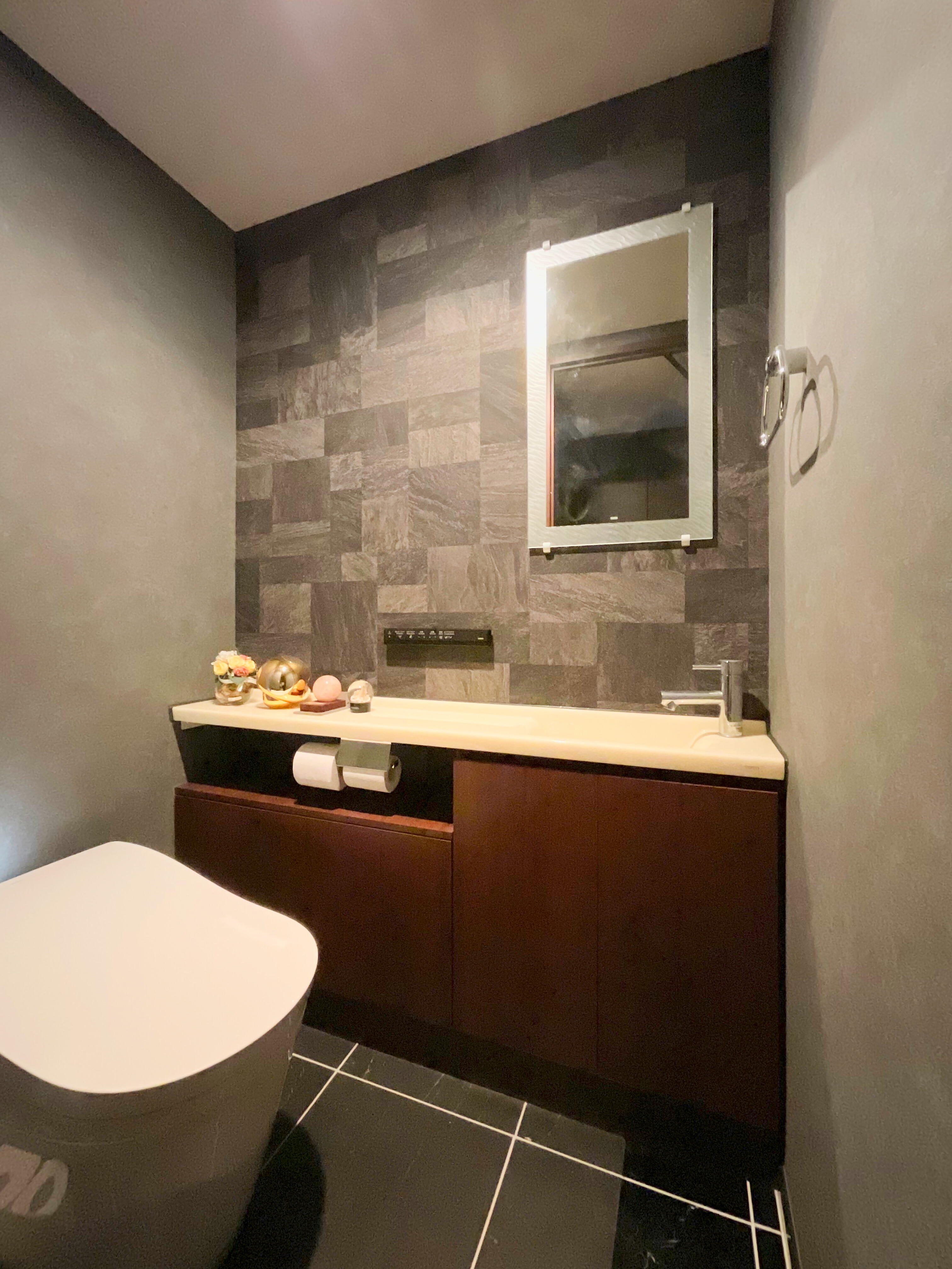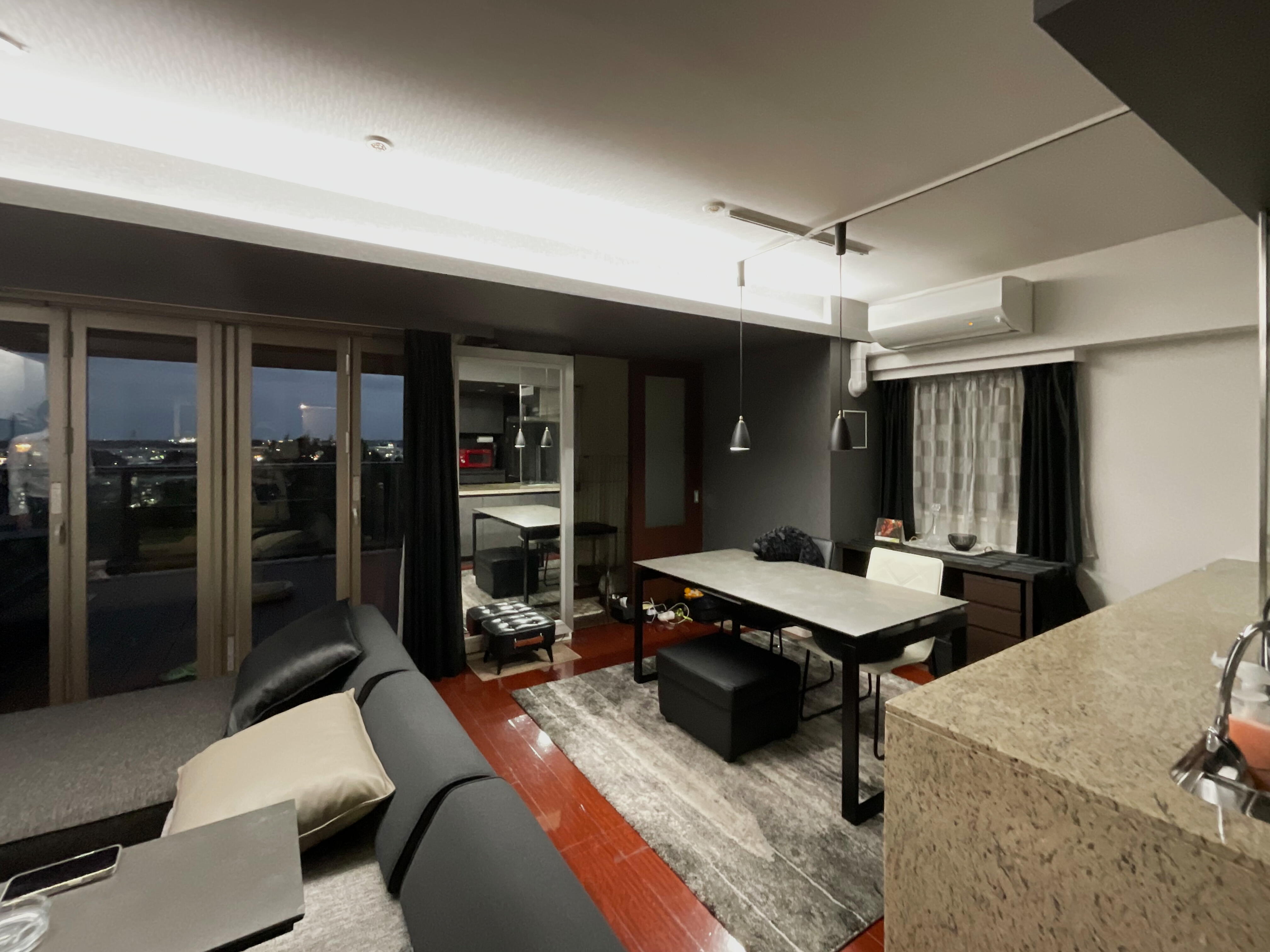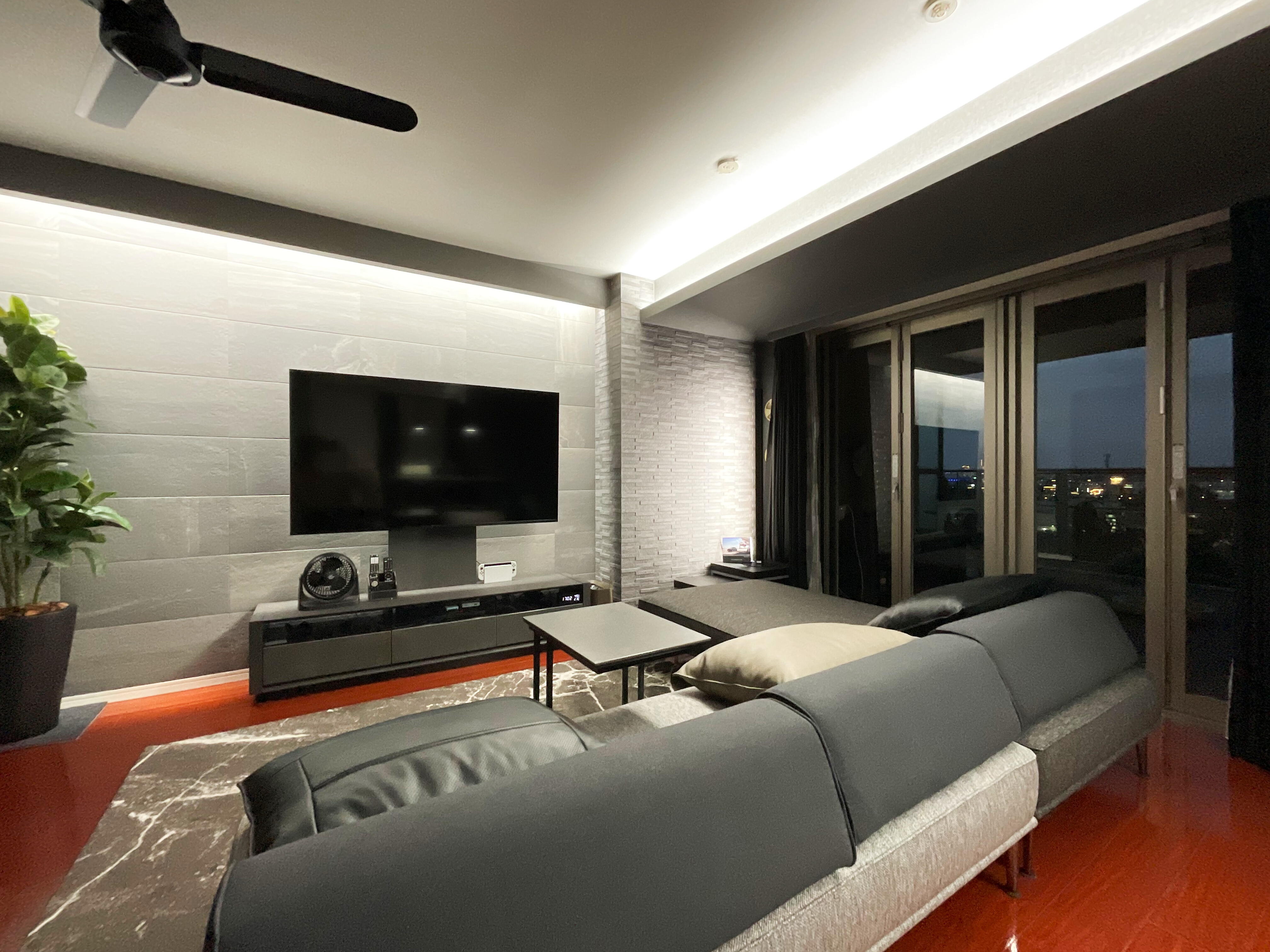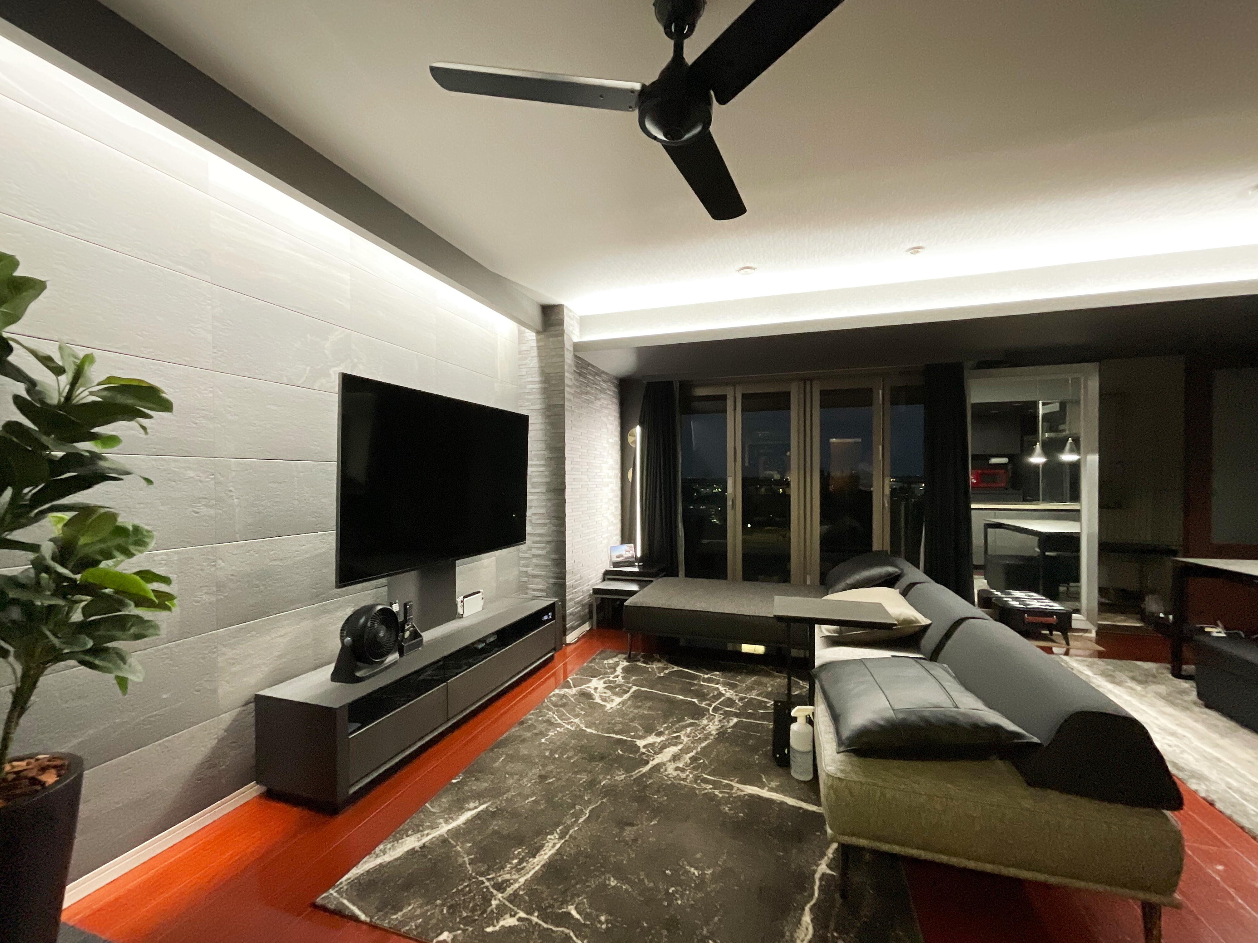 築16年マンションの内装リフォーム。リフォームのきっかけは、マンションで当初からの内装のままだったため、あまり好みでなかったこともあり、黒っぽいかっこいい内装にしたい。照明を使ってお部屋の雰囲気を変えたいというご希望でした。