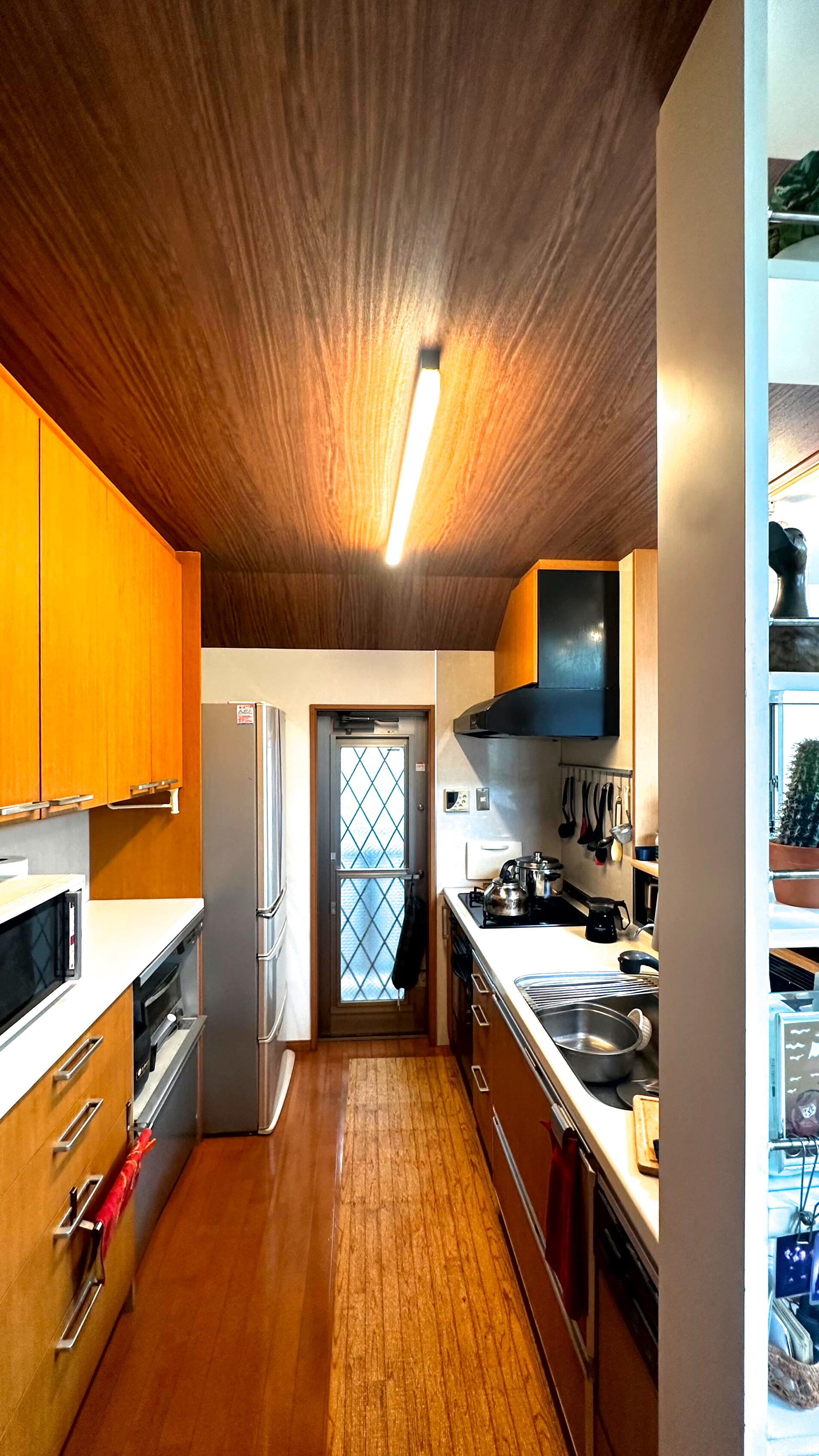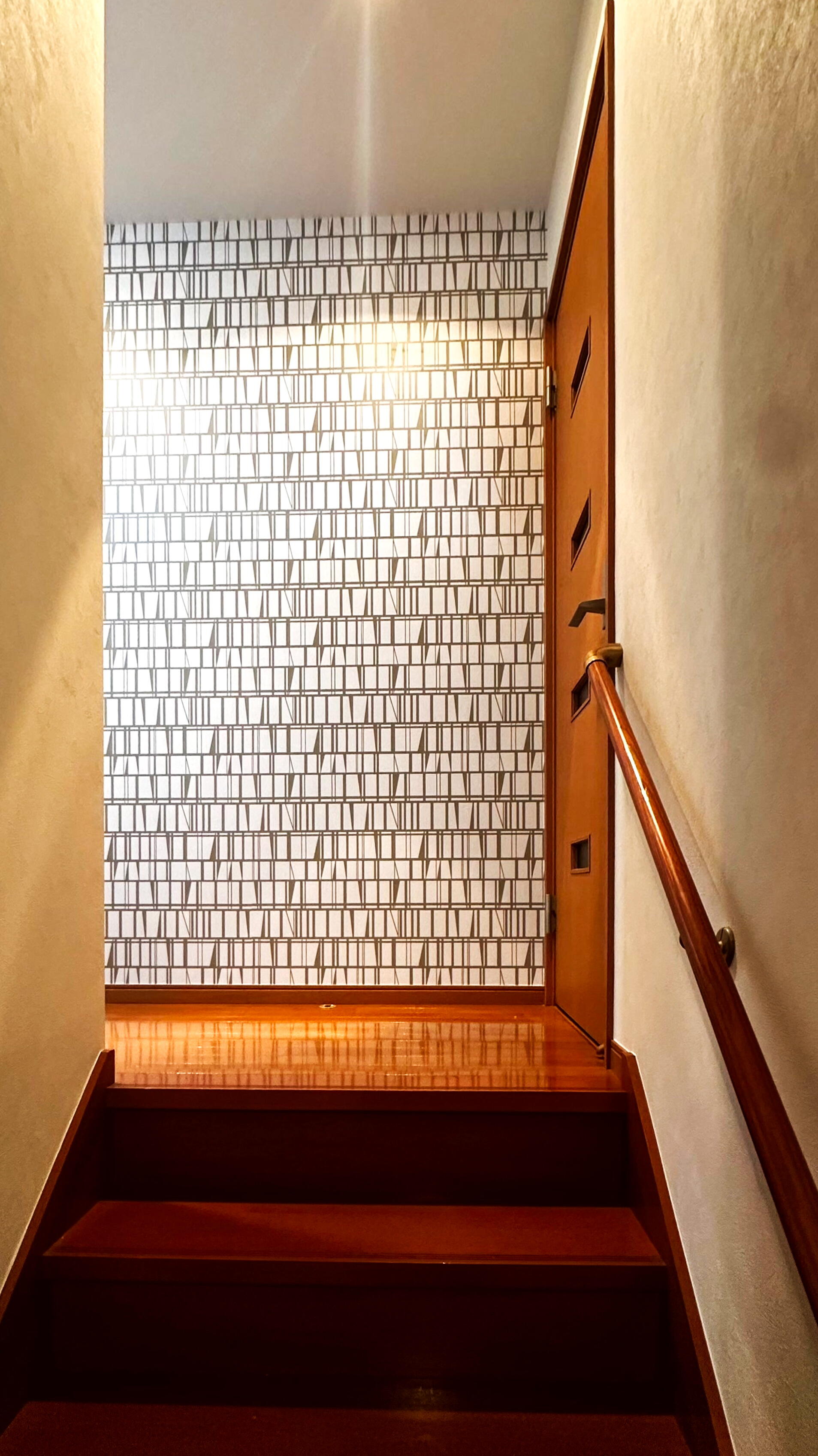 リビングは壁紙を貼り替え、階段まわりには北欧風を意識したデザインを採用。キッチンは天井を思い切って木目にし、白壁とのコントラストで空間にメリハリを演出しました。