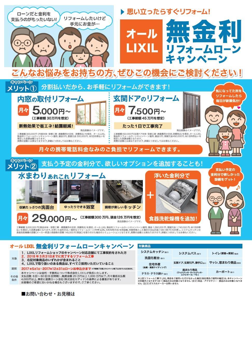 好評頂いてます、LIXILの無金利ローンは今年一杯のお申し込みです。