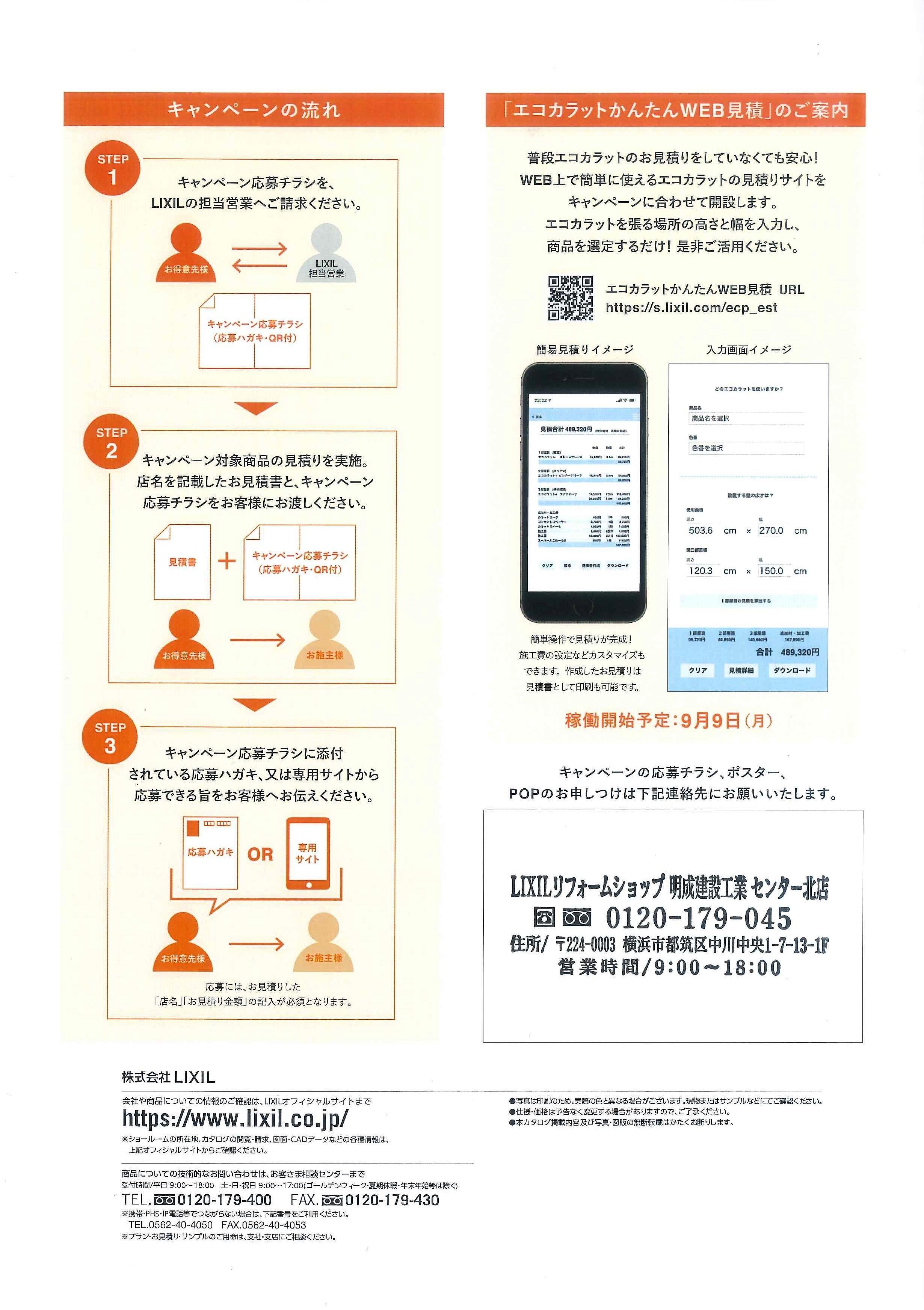 対象のエコカラット商品の見積りをして応募ハガキ、またはWebサイトから応募してください٩( ^o^)و