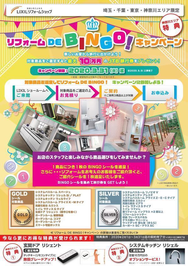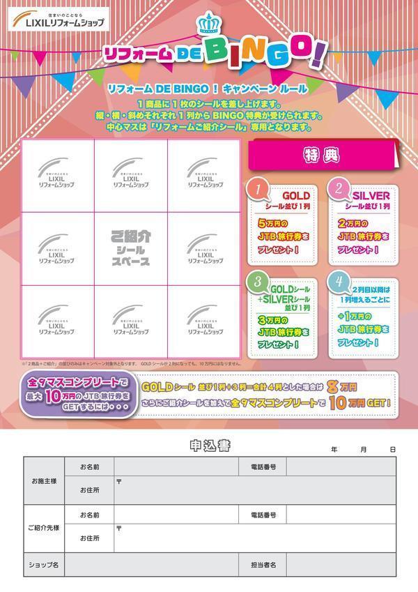 チラシ記載の対象商品のリフォームをしてBINGOシールをGETしよう!!