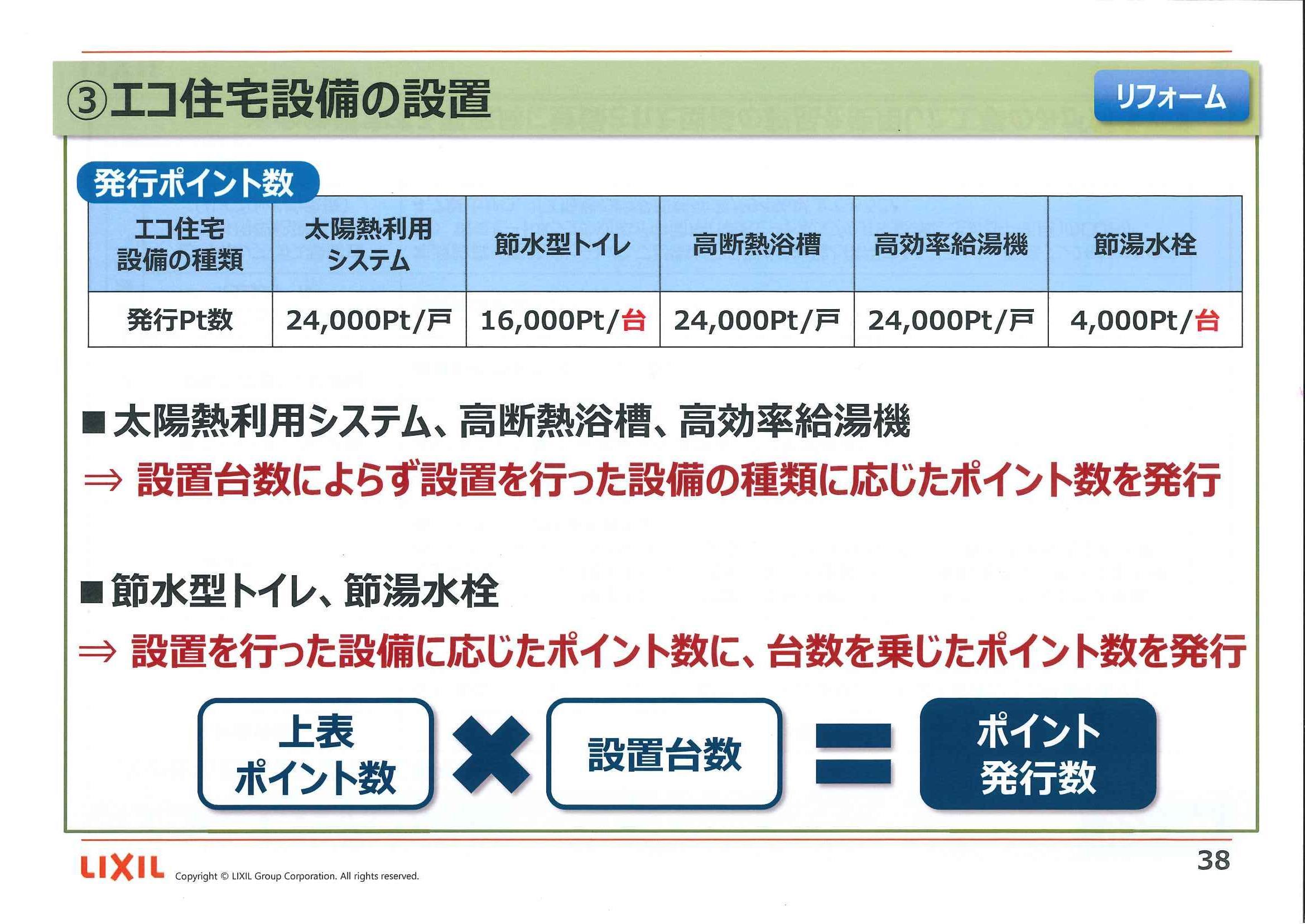 そのポイントを使って指定された追加工事を行うことで取得したポイントを工事代にあてることが可能となります