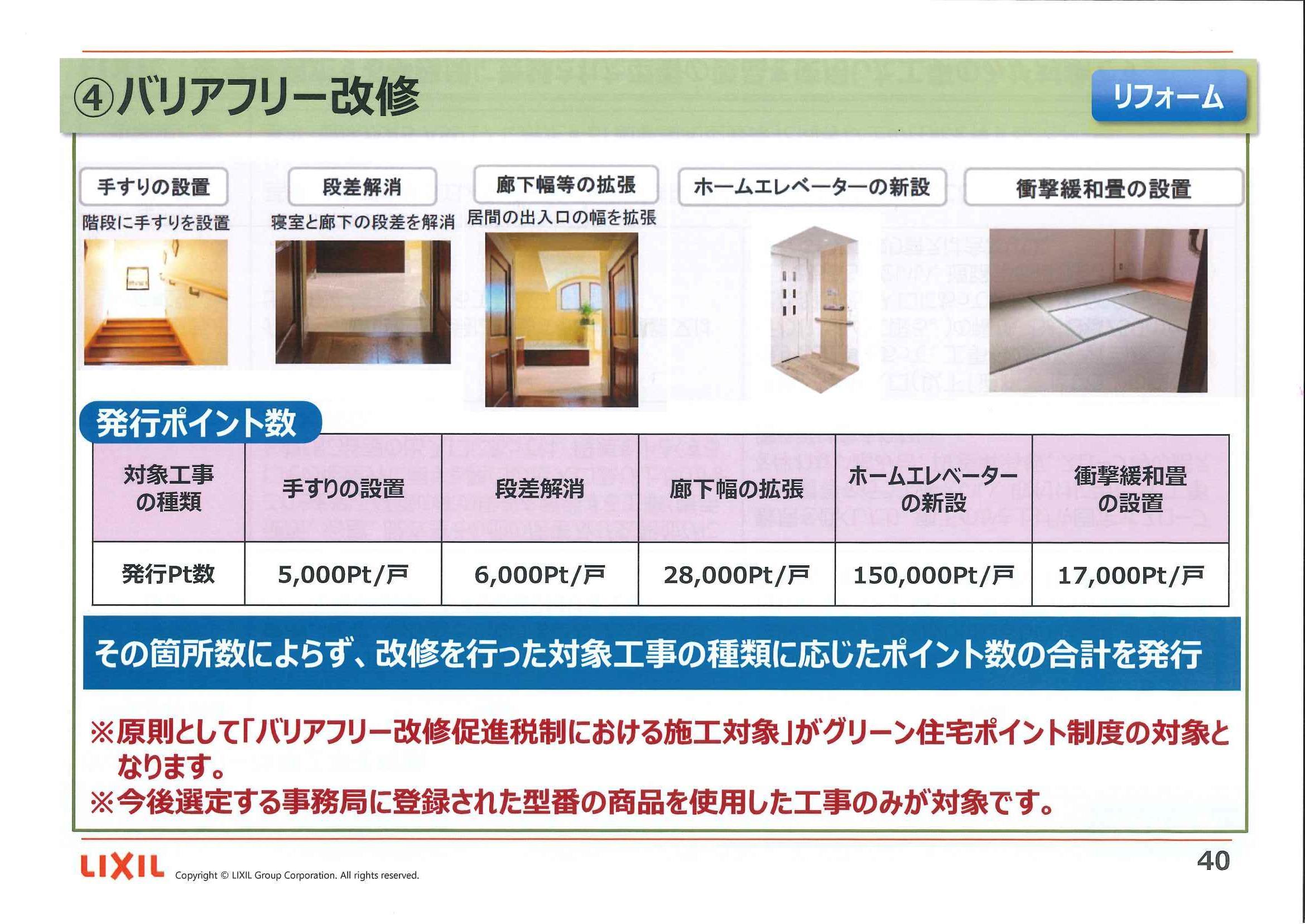 リフォーム工事において指定された工事及び商品を使用した場合にポイントが発行されます