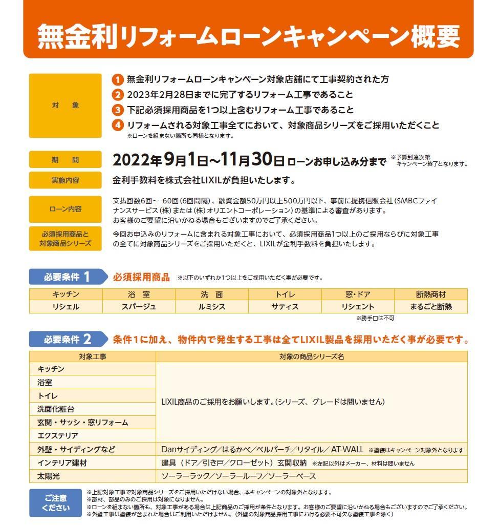 9月から金利0円の無金利ローンキャンペーンが始まります