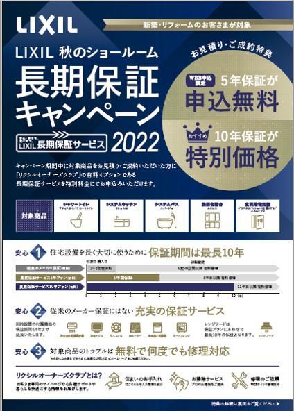 一覧へ戻るLIXIL対象商品をご採用いただくと通常1~2年の保証期間が、5年は無償、10年は特別価格でのご提供となります