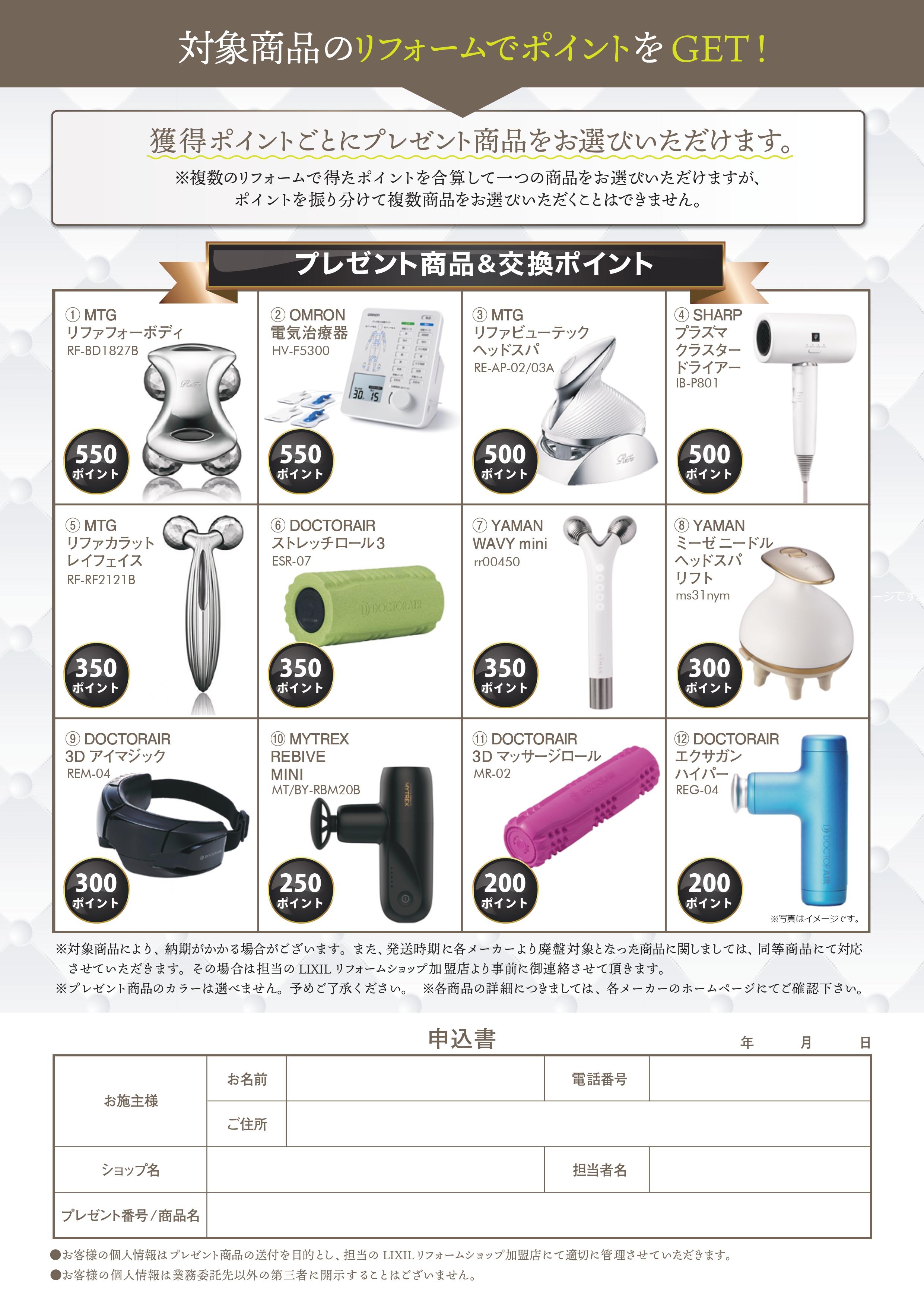 快適なリフォームで健康、美容に嬉しい家電がもらえます!