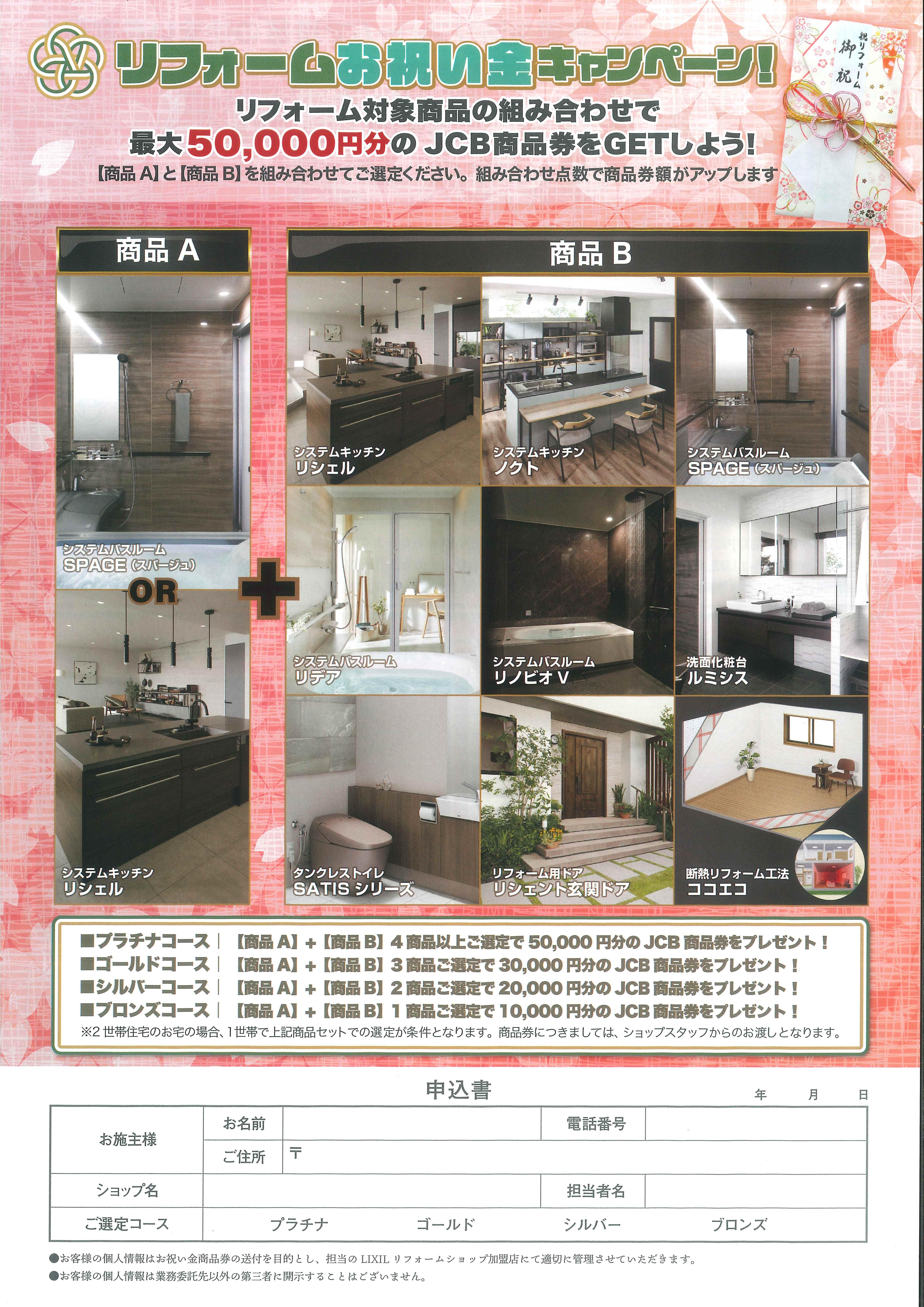 リフォーム対象商品の組み合わせで「最大50000円分」の「JCB商品券」をプレゼント!!