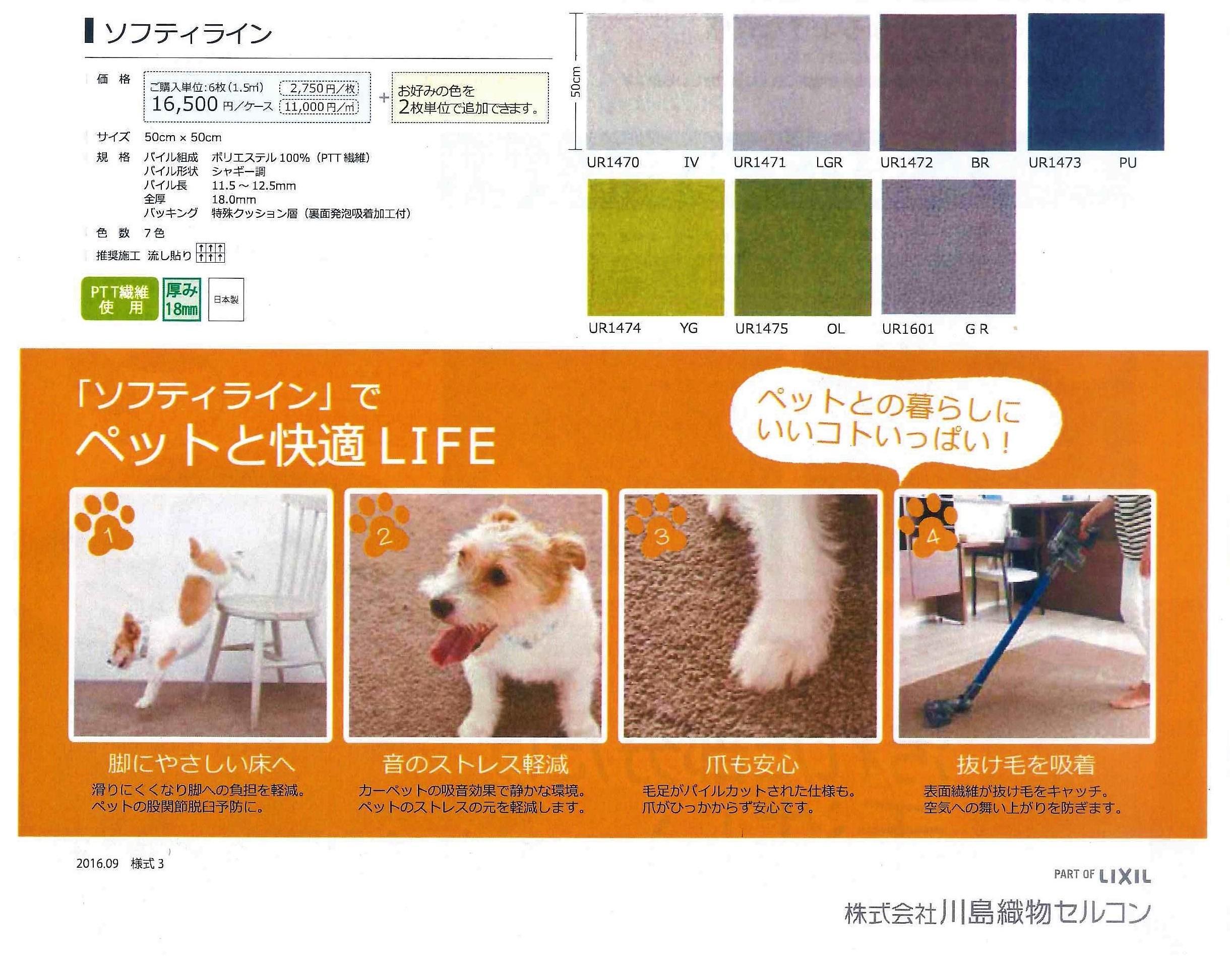 川島織物セルコンの『ソフティライン』は、愛犬向きのカーペットです。