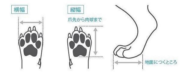 (縦幅の前側はつま先、後側は肉球の最後部に印をつける。)