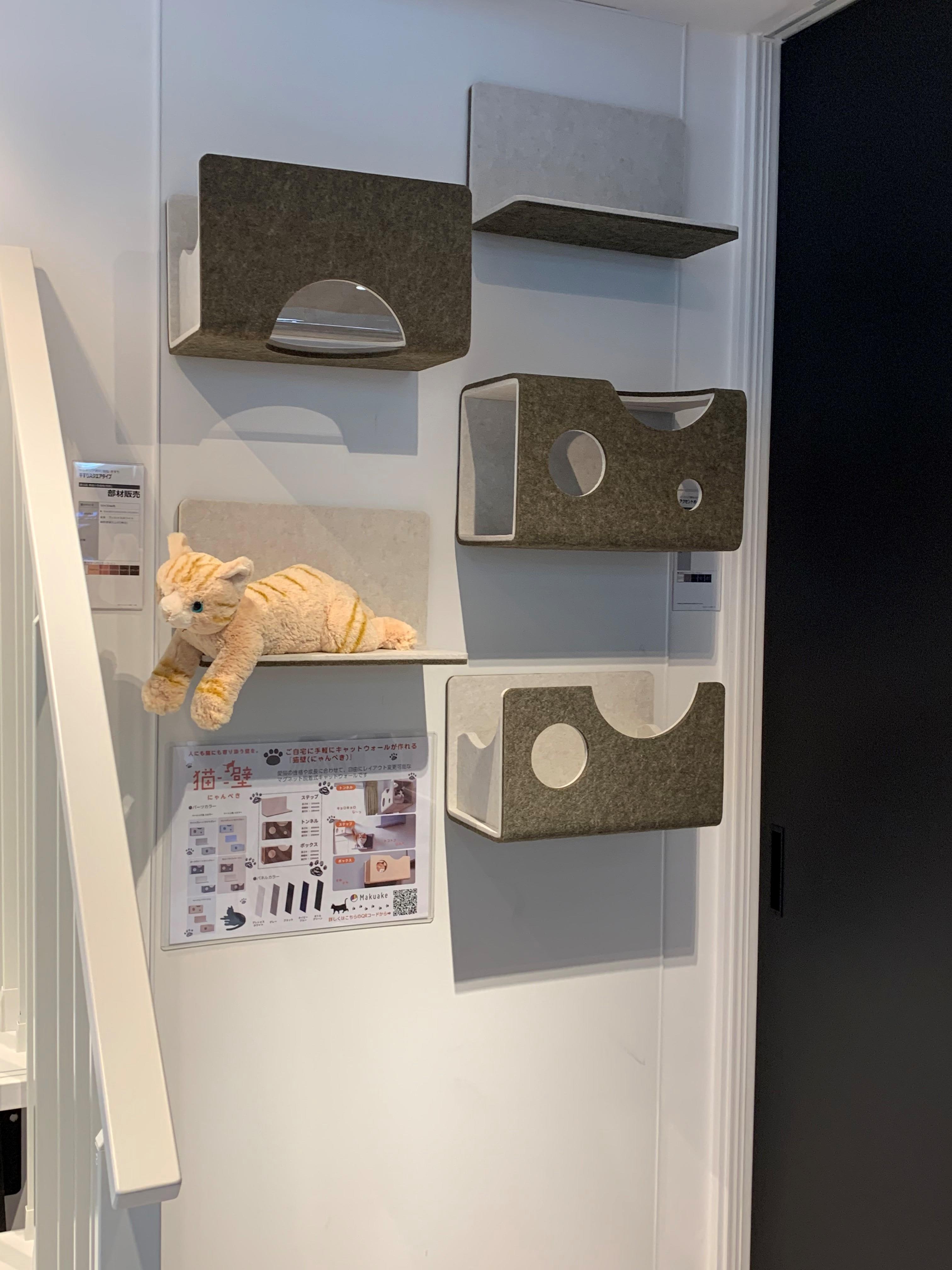 リクシルのキャットウォール猫壁(にゃんぺき)はご自宅の壁にマグネットパネルを施工することで、アレンジ自由な