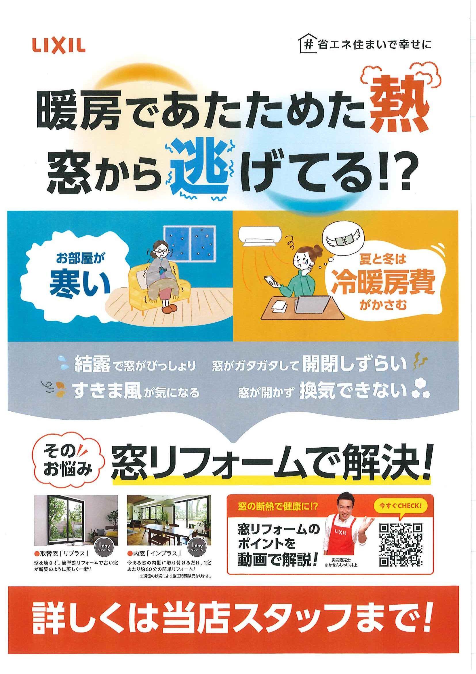 一覧へ戻る本日は『窓リフォーム』のご案内です。