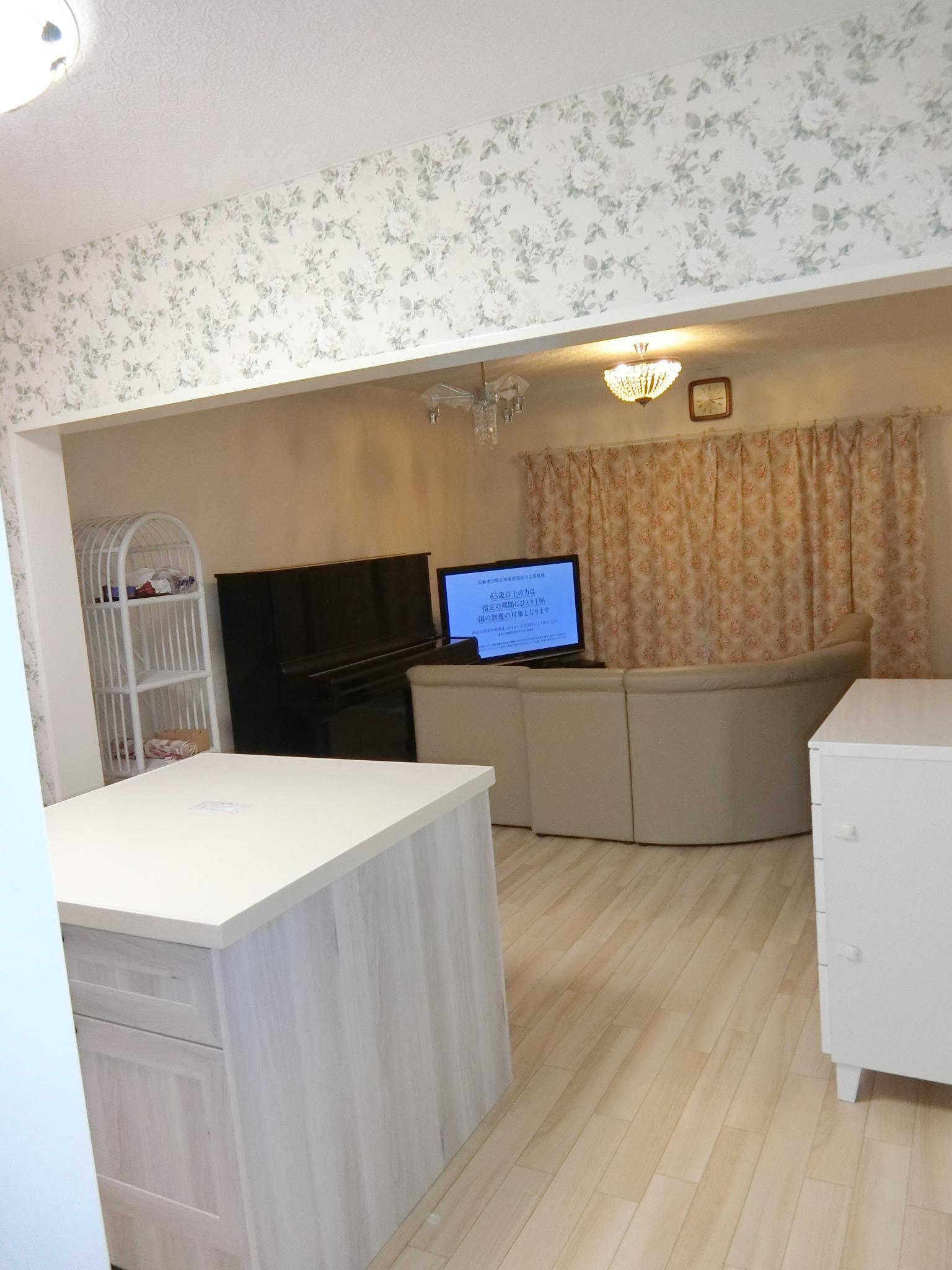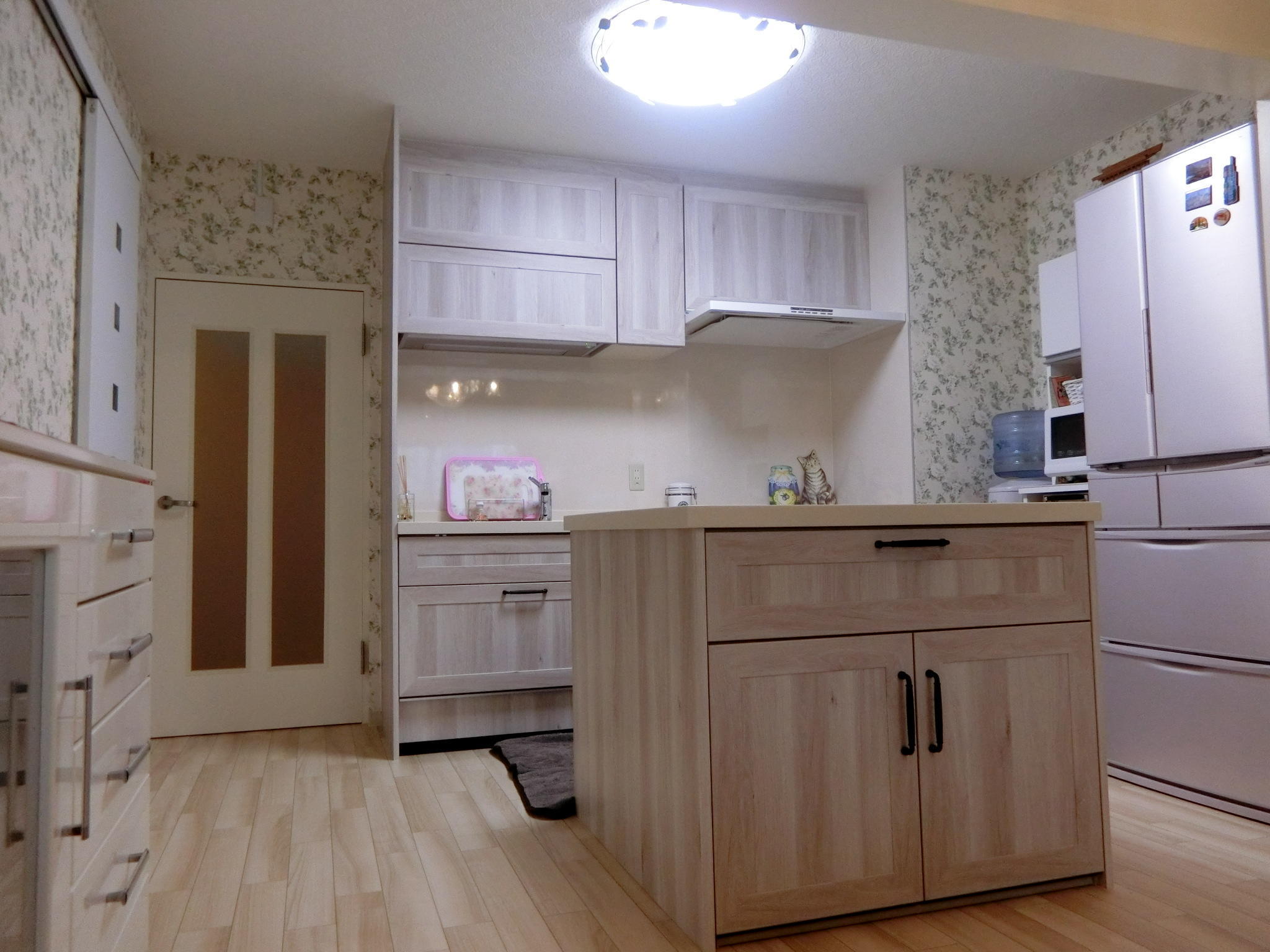 キッチンのセンターにアイランド型の収納を配置して解放感あふれる対面スタイルになりました。