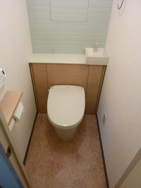 LIXILのトイレ「リフォレ」にしました。以前は掃除道具など丸見えだったのがすべて、後ろの収納スペースに収めることができて、スッキリとした空間が生まれました。その他の事例はこちら