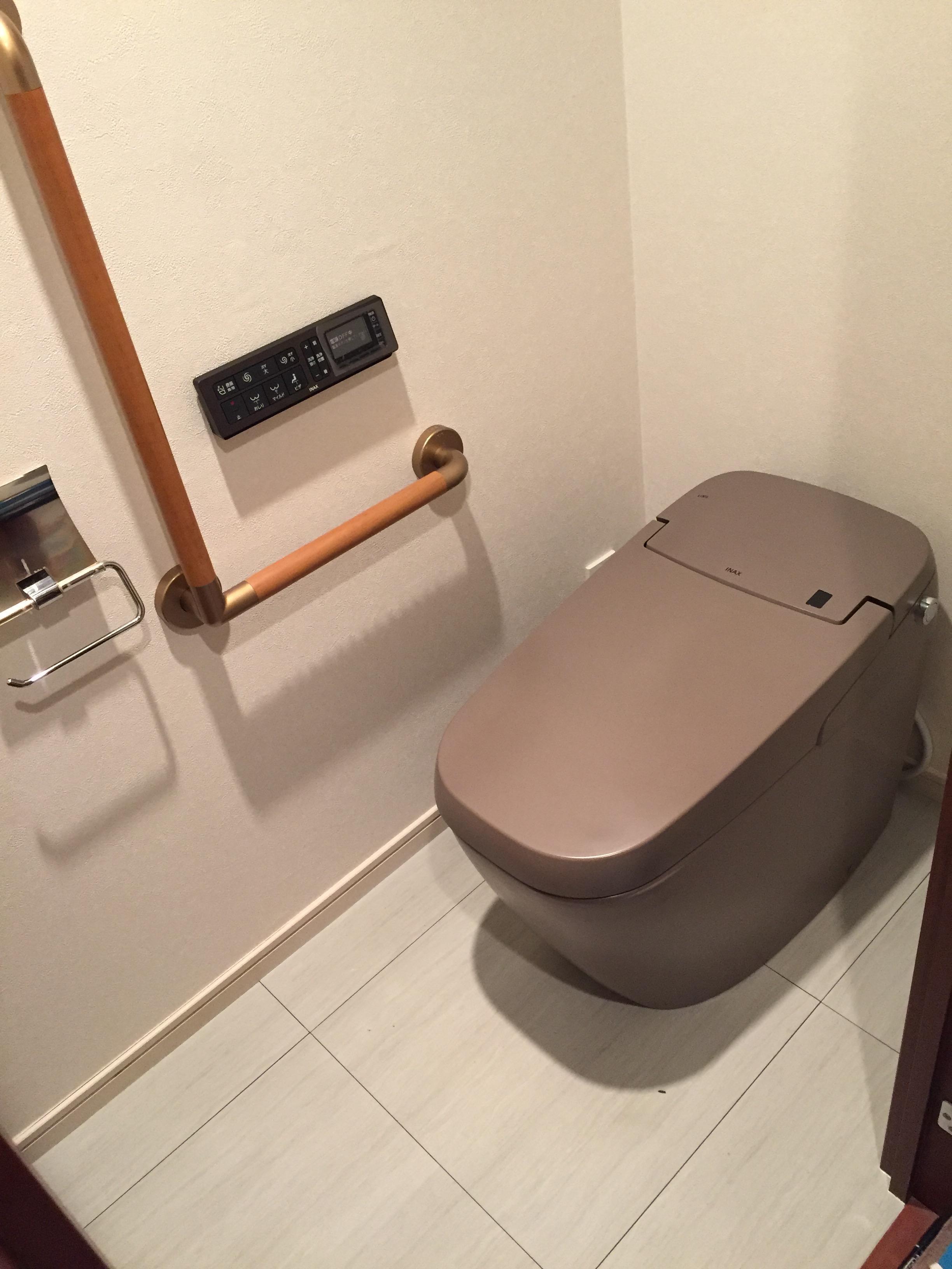 LIXILのタンクレストイレ「サティスG」をご選定いただきました。新色のノーブルトープを大変気に入られて、リフォームすることに。女性に人気のニュアンスカラーで、「サティスGタイプ」専用カラーです。その他の事例はこちら