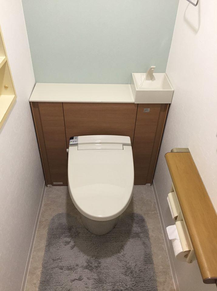 LIXILキャビネット付トイレ「リフォレ」をご選定いただきました。 壁と床の内装も一緒にリフォームしたことで、ガラリとトイレ空間が変わりました。 ペーパーホルダーは既存のものを再利用しております。 その他の事例はこちら