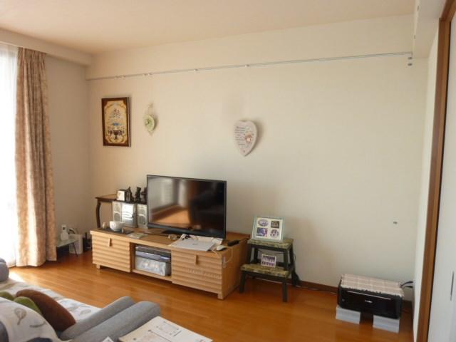 LIXIL内装タイル「エコカラット プラス」をご選定いただきました。 テレビの後ろの壁に「ラフクォーツ」を張りました。 色は家具や床材になじむような「ライトグレー」を選ばれました。 その他の事例はこちら