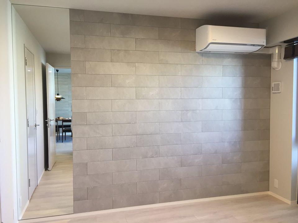 LIXIL内装タイル「エコカラットプラス」をご選定いただきました。 新築マンション入居前工事。エコカラット面にエアコンを取付けるのに、ベニヤで厚み調整して取付ました。また、寝室とトイレには鏡を壁の高さに合わせて取付けました。その他の事例はこちら