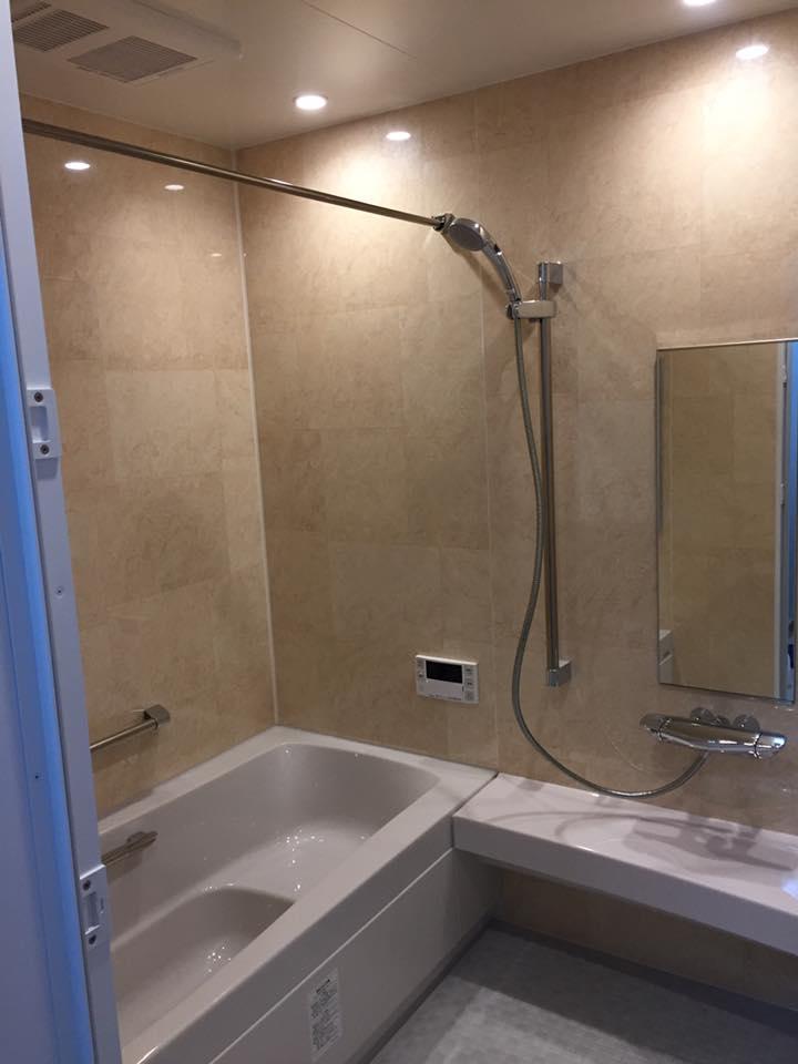 LIXILユニットバスルーム「スパージュ」をご選定いただきました。 在来浴室が寒いのが悩みだったとのこと。 冬でも床がヒヤッとしない「サーモフロア」なら独自の断熱層により、足裏から逃げる熱を少なくし冷たさを感じさせません。 汚れはスポンジで拭き取るだけでサッと落とせます。その他の事例はこちら