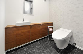 立派な柱と梁は設計する上での制約にもなりましたが、モダンな雰囲気の居間の素晴らしいアクセントになりました。又、実物を見ないと後で絶対後悔すると思い、キッチンなどの商品選びにはLIXILのショールームにも何度も一緒に行って頂きました。