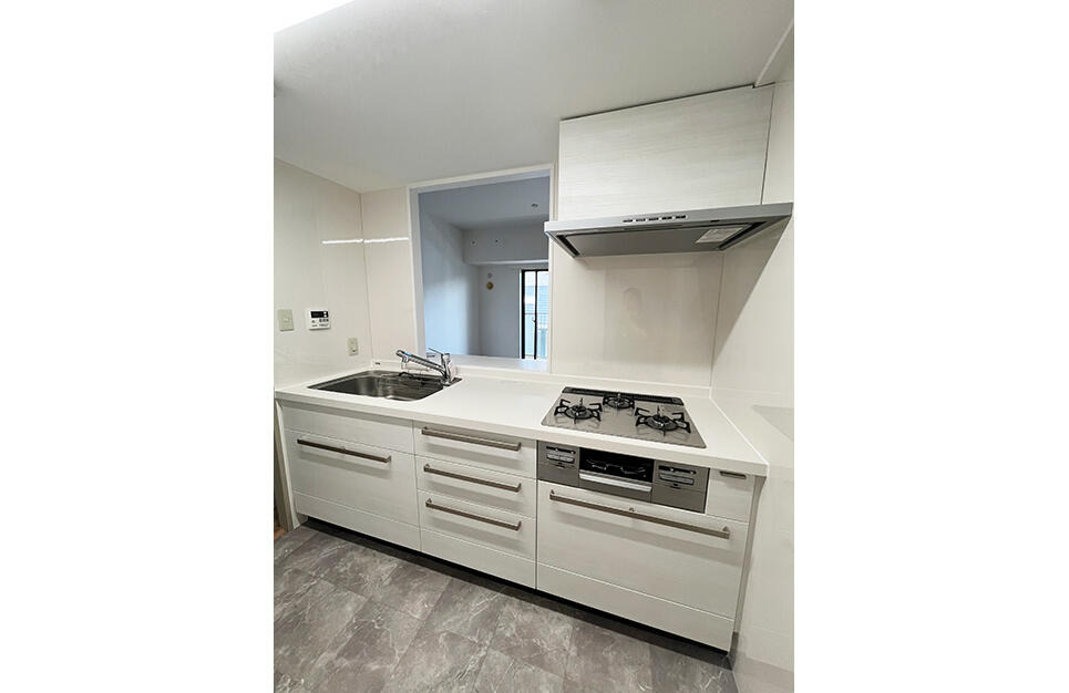 中古マンションをご購入され、リフォームを実施されました。全体的に明るい部屋にしたいとのご要望で、特にキッチンは自然の光が入ってくるくらいの明るさが欲しいとのことでした。