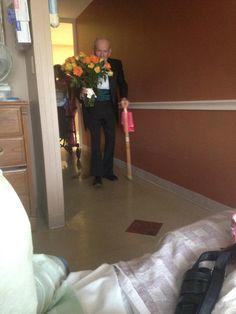 57回目の結婚記念日をお祝いするために、入院中を奥さんをお見舞いする旦那さま。