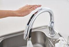 キッチンや洗面所の水栓をタッチレス水栓にすれば、蛇口をひねる動作が不要なので、