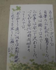 お客様より達筆なお葉書をいただきました。有難うございます。