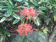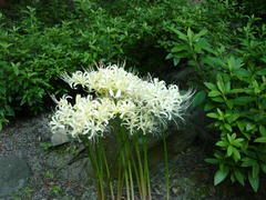 彼岸花が出迎えてくれました。白い彼岸花もあるんですねぇ。