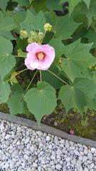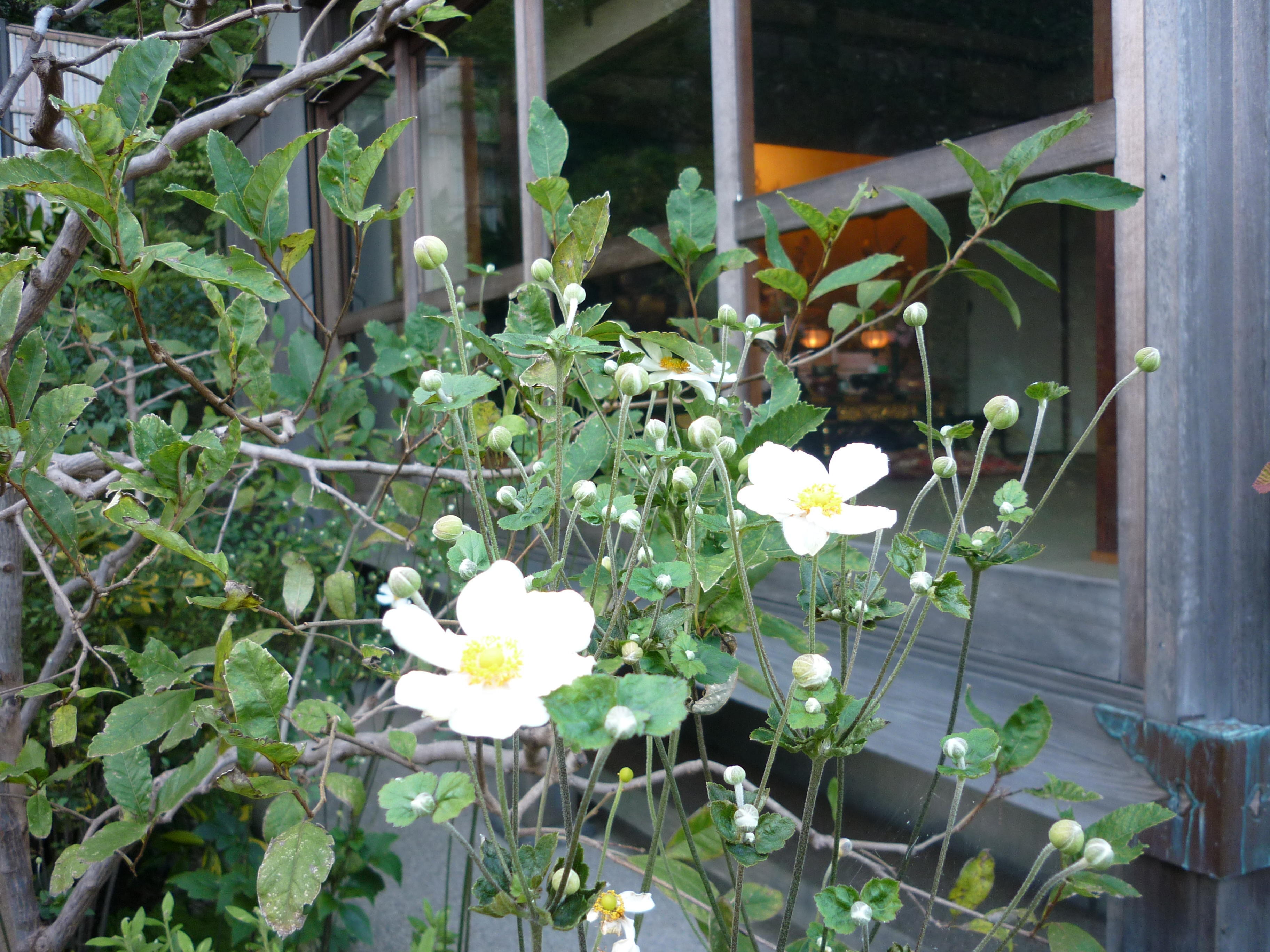 夏の花の「フヨウ」も、もう終わり・・・白い花は「シュウメイギク」でしょうか?