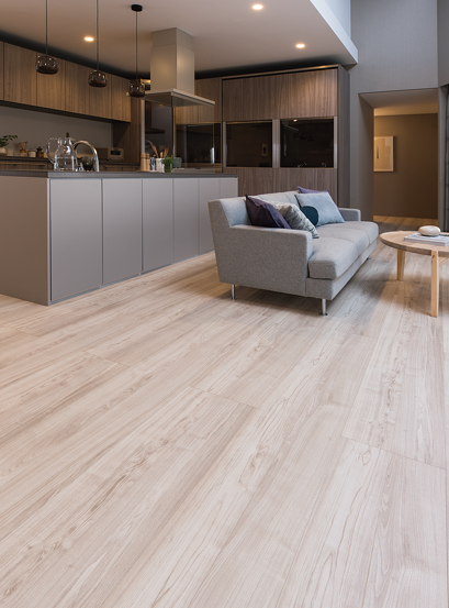 耐水性、抗菌性を備えた高機能床材なので、キッチンはもちろん、