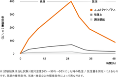 エコカラットプラスは湿度が高い時は湿気を吸収し、乾燥している時は湿気を放出。