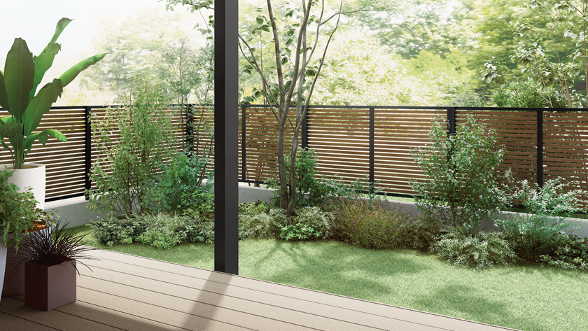 LIXILのフェンスなら、完全目隠しから格子タイプまで8デザイン19タイプの中からお選びいただけます。