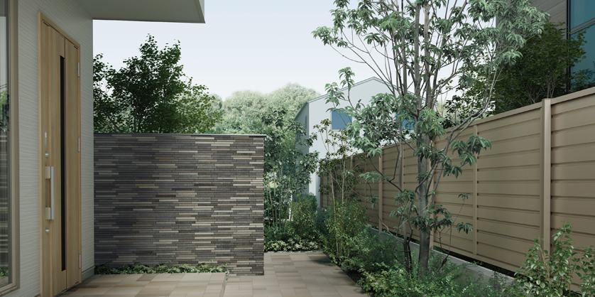 フェンス裏面も木調で、内観からの見た目も美しく。外構デザインのバリエーションが広がります。