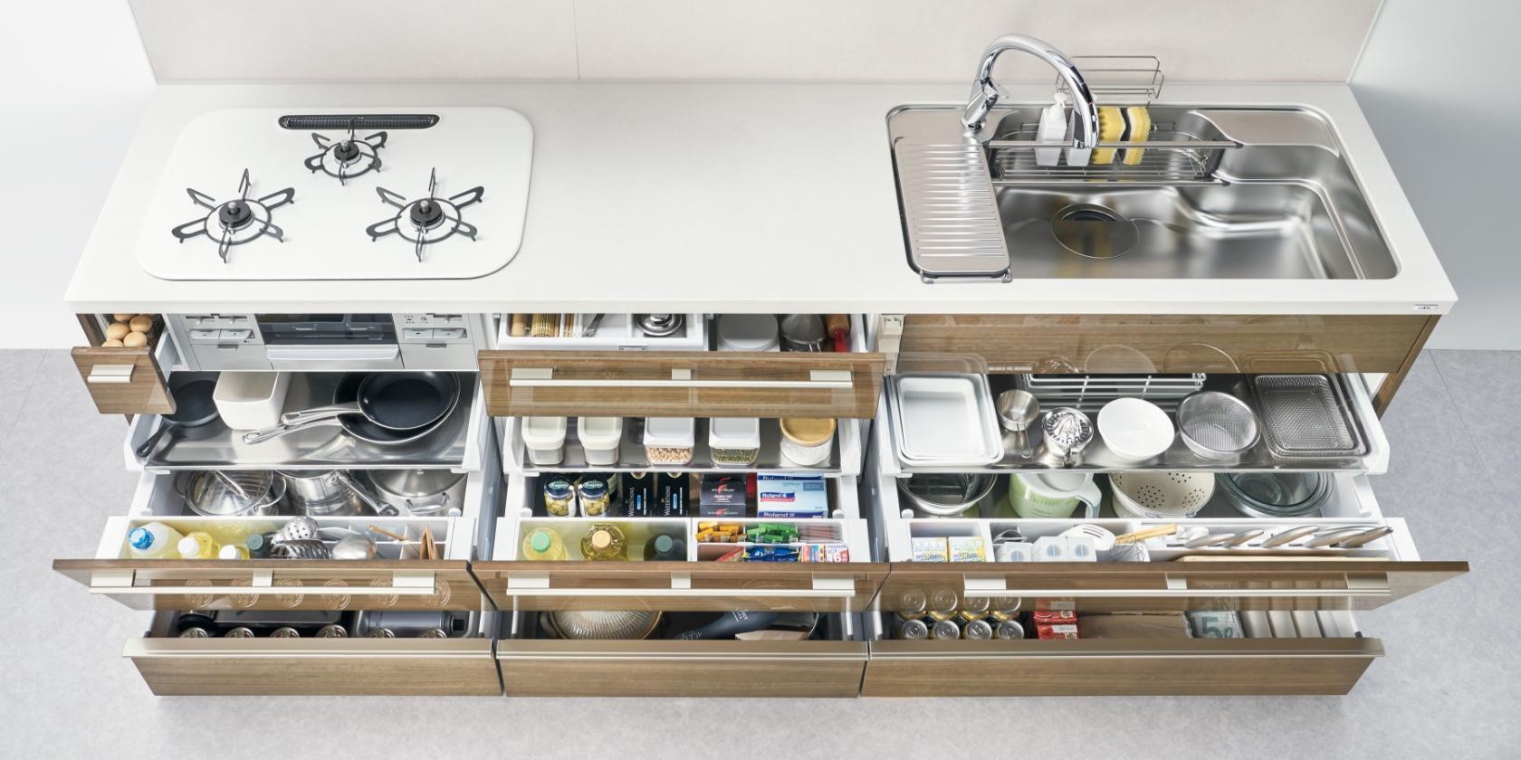 LIXILのキッチンなら収納もこんなにたっぷり。