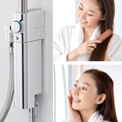 髪やお肌へのダメージを抑えてくれるシャワーです。