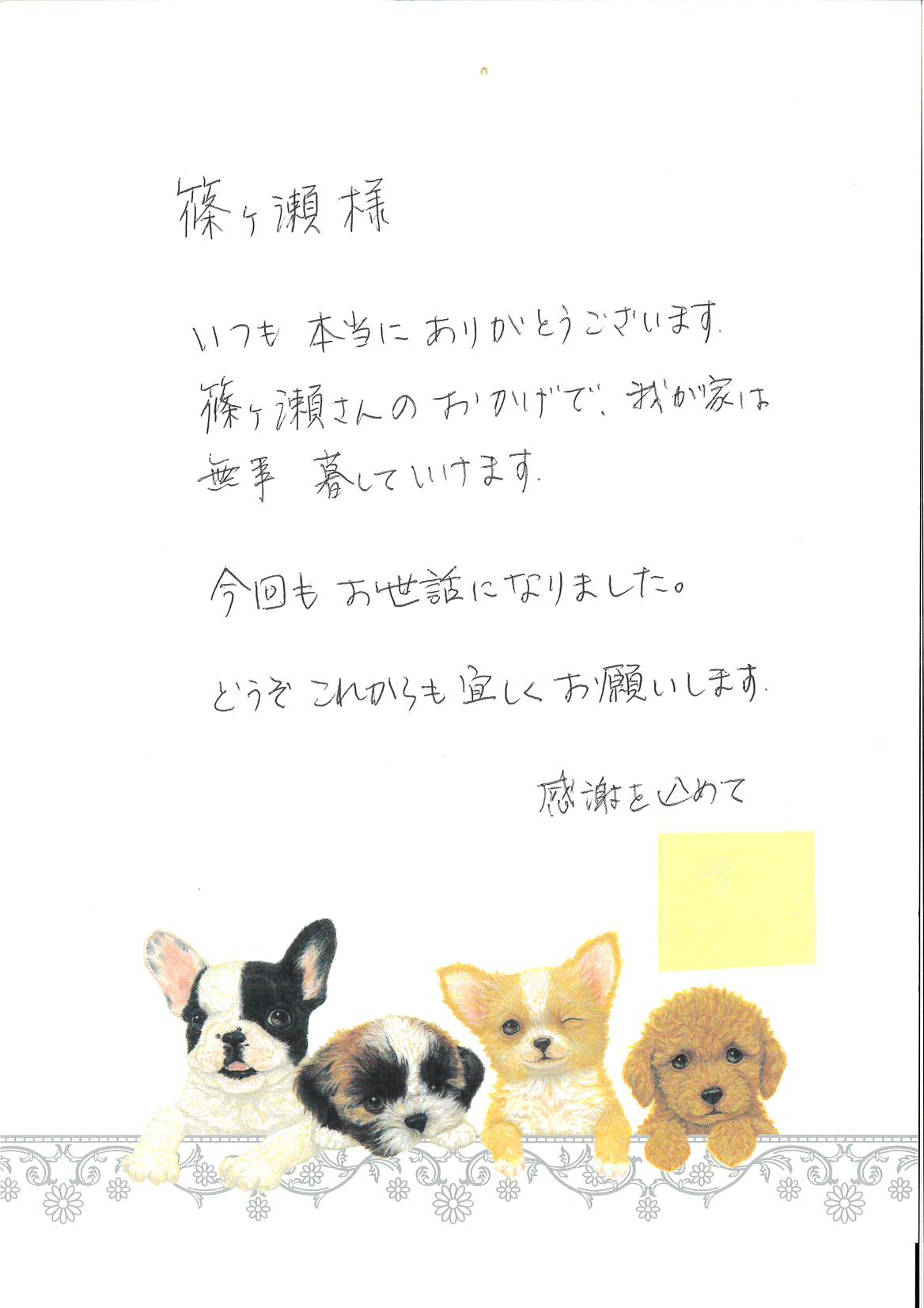 工事をさせて頂いたお客様より、うれしいお手紙を頂きました。