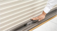 幅木の把手をもってシャッターを下ろせば自動施錠できる仕様になっています。