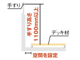 ※建築基準法では、転落防止の観点からベランダの床面から手すりまでの高さを1100mm以上にすることが規定されています。