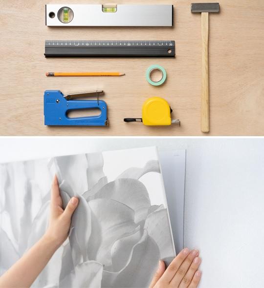 ⽔平に気を付けながら取り付けます。マグネットなので張り直しも簡単です。