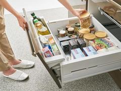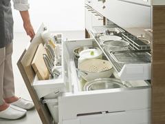 物の定位置を設計した作りになっているため、包丁やボウルなど、よく使う道具の取り出しに迷うことが減ります。