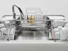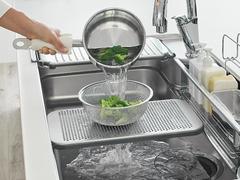 プレートと水切りかごを使って後片付けが段取りよく行えます。