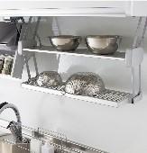 必要な時だけ降ろして目の高さで使える棚や作業効率を重視した収納。