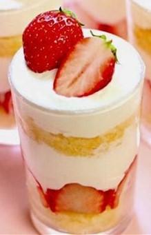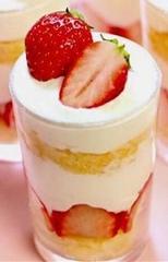 いちごと小さく切ったカステラ、市販の泡立て済のホイップクリームを交互にグラスに入れるだけ。