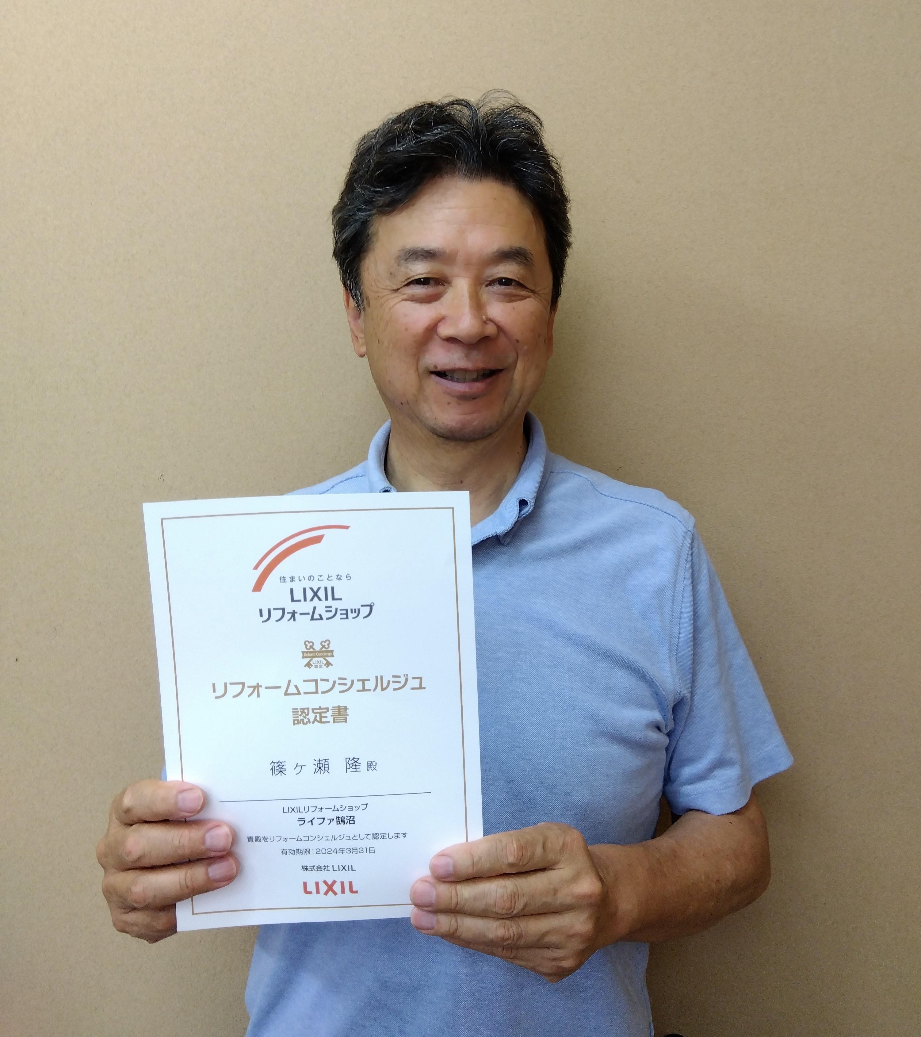 社長にLIXILの「リフォームコンシェルジュ」の認定書が届きました。