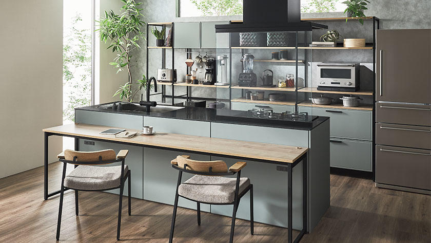 扉や引出しを開け閉めして道具を探すことなく、必要なモノが必要なときにさっと取り出せます。